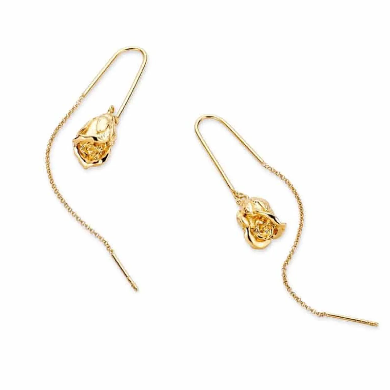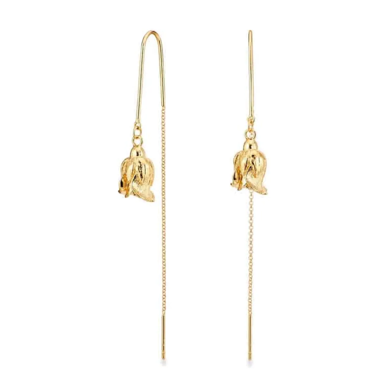 FLORA DANICA ROSE ØREHÆNGERE MED KÆDE I FORGYLDT SØLV – ROS-EACH-G