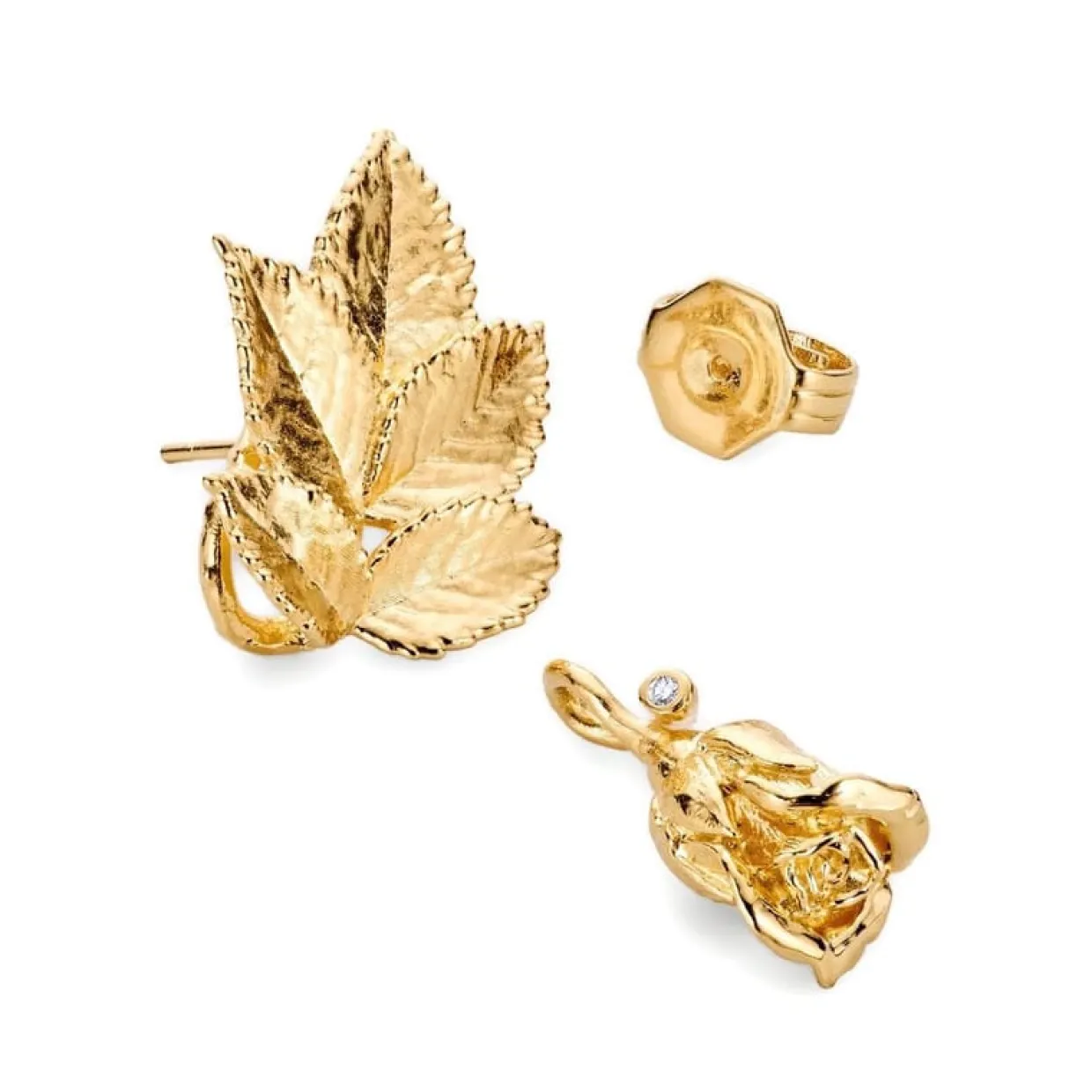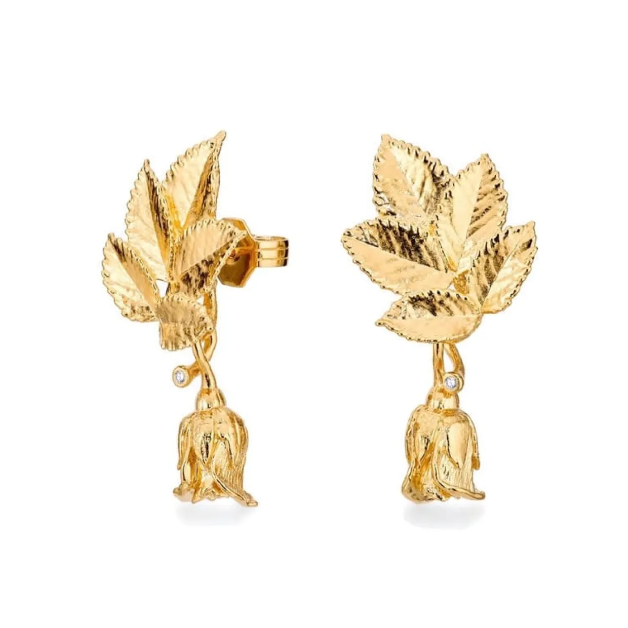 FLORA DANICA ROSENBLAD ØRERINGE I FORGYLDT SØLV MED AFTAGELIGE ROSER OG DIAMANTER – ROS-EAPEN-G