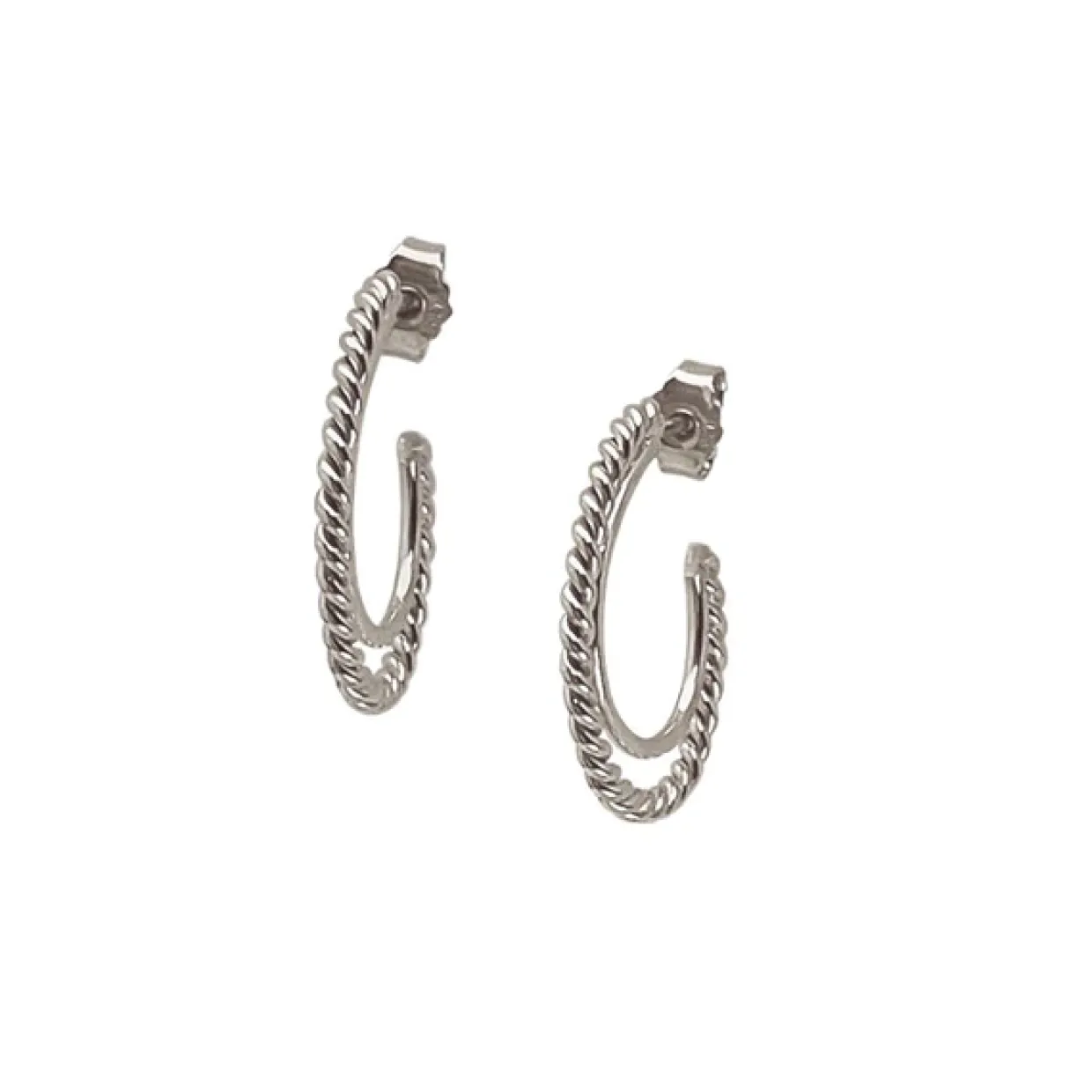 Disse flotte øreringe er fremstillet i sterling sølv som er rhodineret i overfladen så de er blanke og fine. Øreringene er designet som halv creoler med ørestik. Øreringen har to tråde i creolens cirkel, hvor den ene er glad og den anden er snoet.