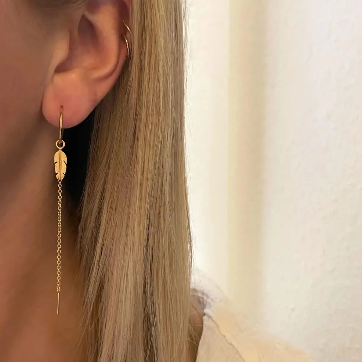 Den delikate fjerdetalje symboliserer frihed og lethed. Øreringene bevæger sig smukt, når du gør, og giver et sofistikeret udtryk.