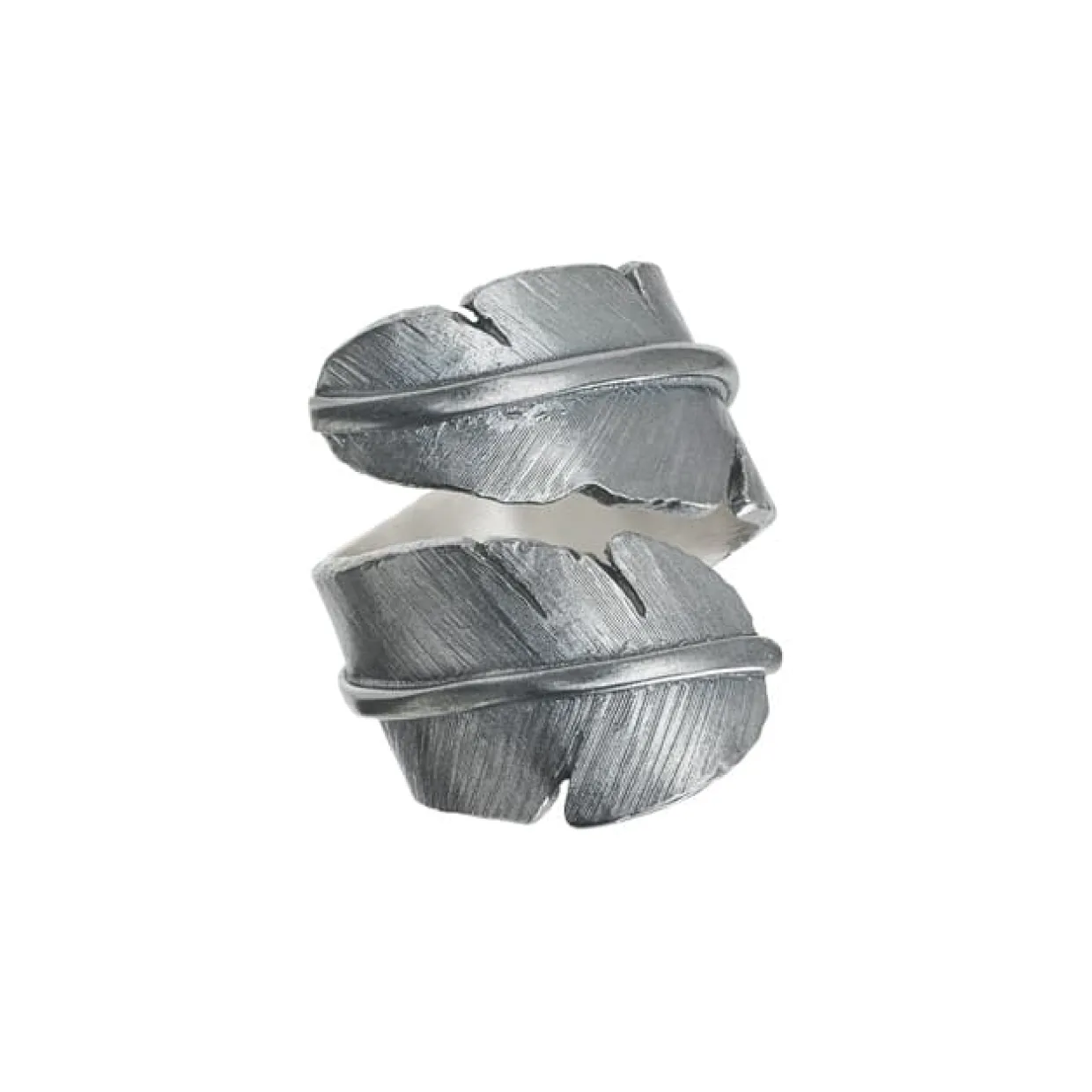 En ring med karakter og symbolik. Heiring Fjer ringen er udført i oxyderet sterlingsølv, hvilket giver den et råt og stilfuldt udtryk. Designet er inspireret af naturens lethed og frihed, hvor fjerens organiske former slynger sig elegant om fingeren.