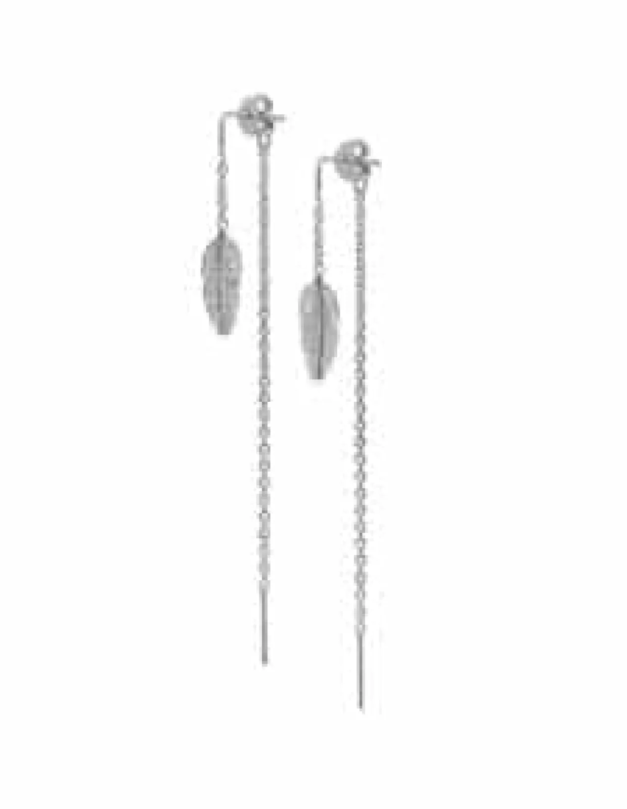 Fjer øreringen er fremstillet i 925 sterling sølv med en mat overflade, der sidder kæde på låsen som går bag øret.