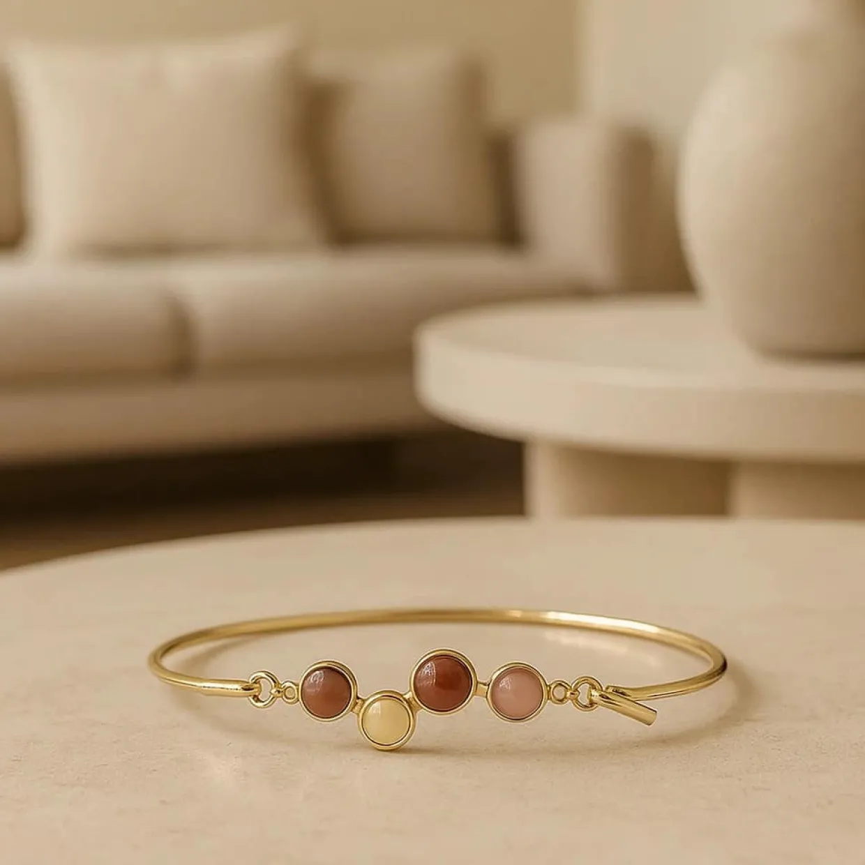 Toppen har en bredde på 5 mm med mixet ædelstene, som er rød aventurin, peach månesten, rød jasper og gul aventurin.