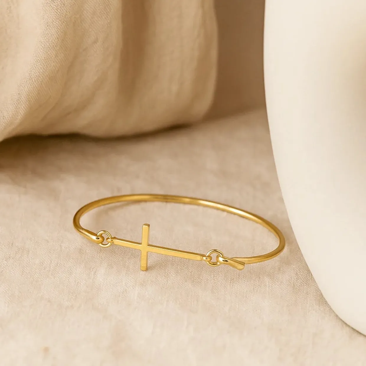 Tilføj et strejf af luksus og symbolik til din smykkesamling med denne smukke Heiring kors top i forgyldt sølv. Denne elegante top er designet specielt til multi armringe og giver mulighed for at skabe et personligt og stilfuldt look.