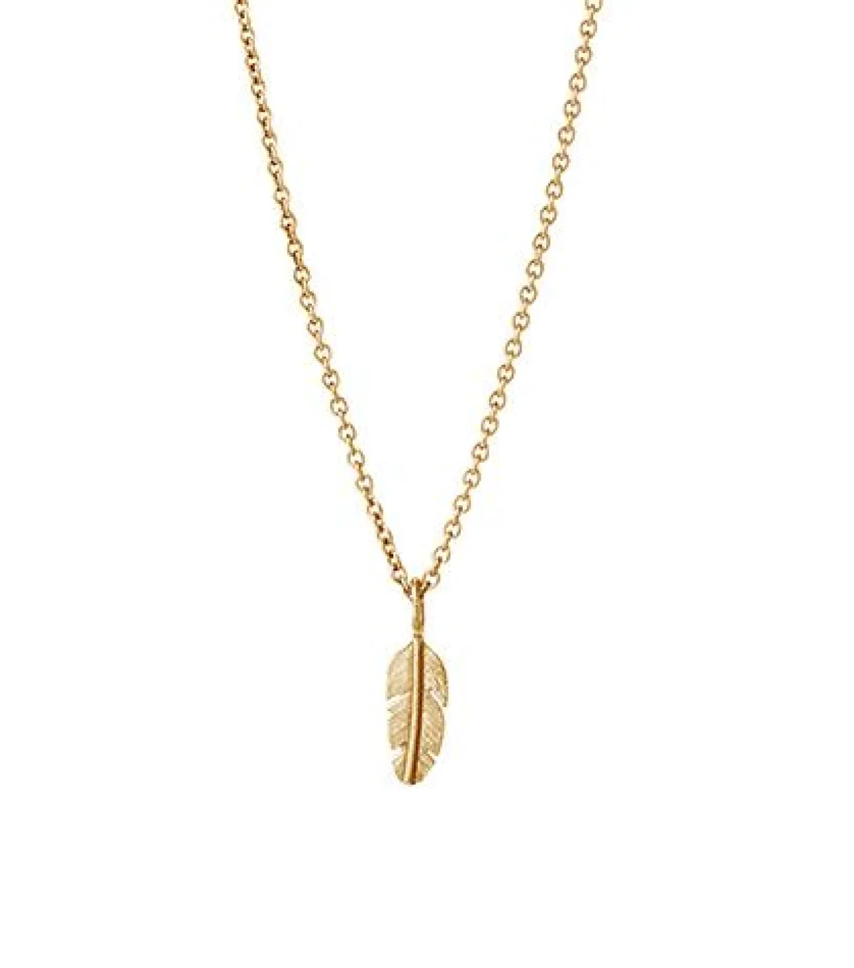 Mini Feather vedhæng fremstillet i 14 karat guld. Brug vedhænget for sig selv eller sammensæt med andre vedhæng, f.eks. Heirings Feather vedhæng i en større størrelse eller et klassisk vedhæng med en farvet ædelsten.