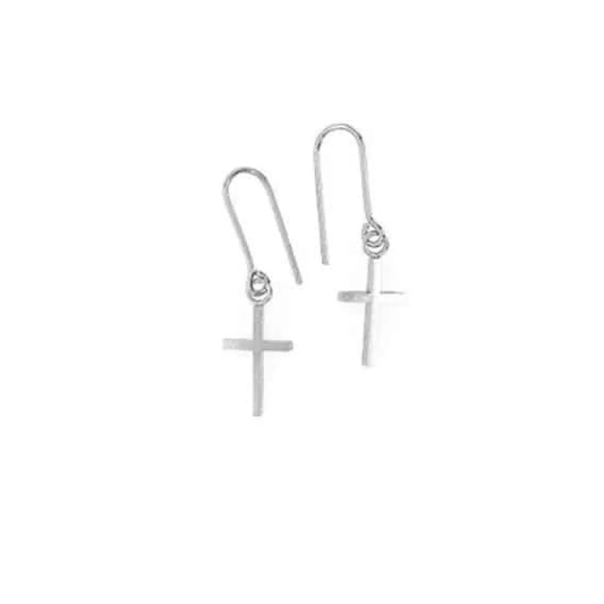 HEIRING ØREHÆNGER I SØLV RHODINERET MED KORS – 52-1-91RH