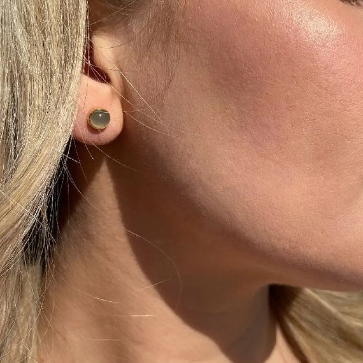Øreringen er fremstillet 925 forgyldt sterling sølv og fås også med grå månesten, turkis, akvamarin og mexican agat.