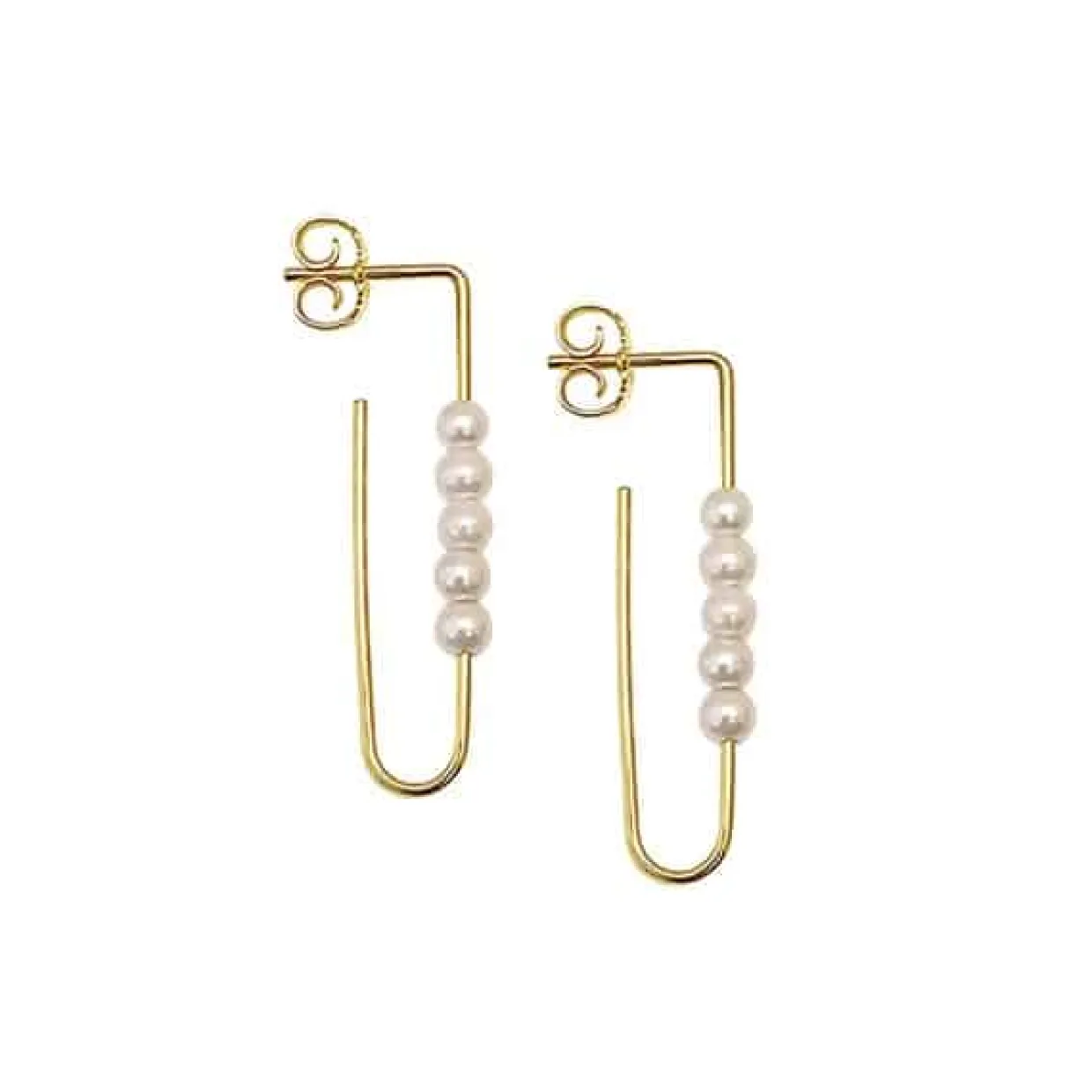 Øreringene er fremstillet i sterlingsølv og belagt med 18 karat guld. De fem små perler tilfører et naturligt og tidløst præg.