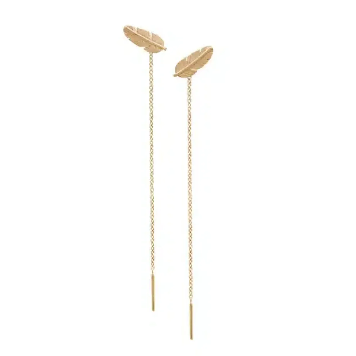 Flotte sølv forgyldte øreringe med kæde, øreringen er en del af fjer serien fra Heiring.