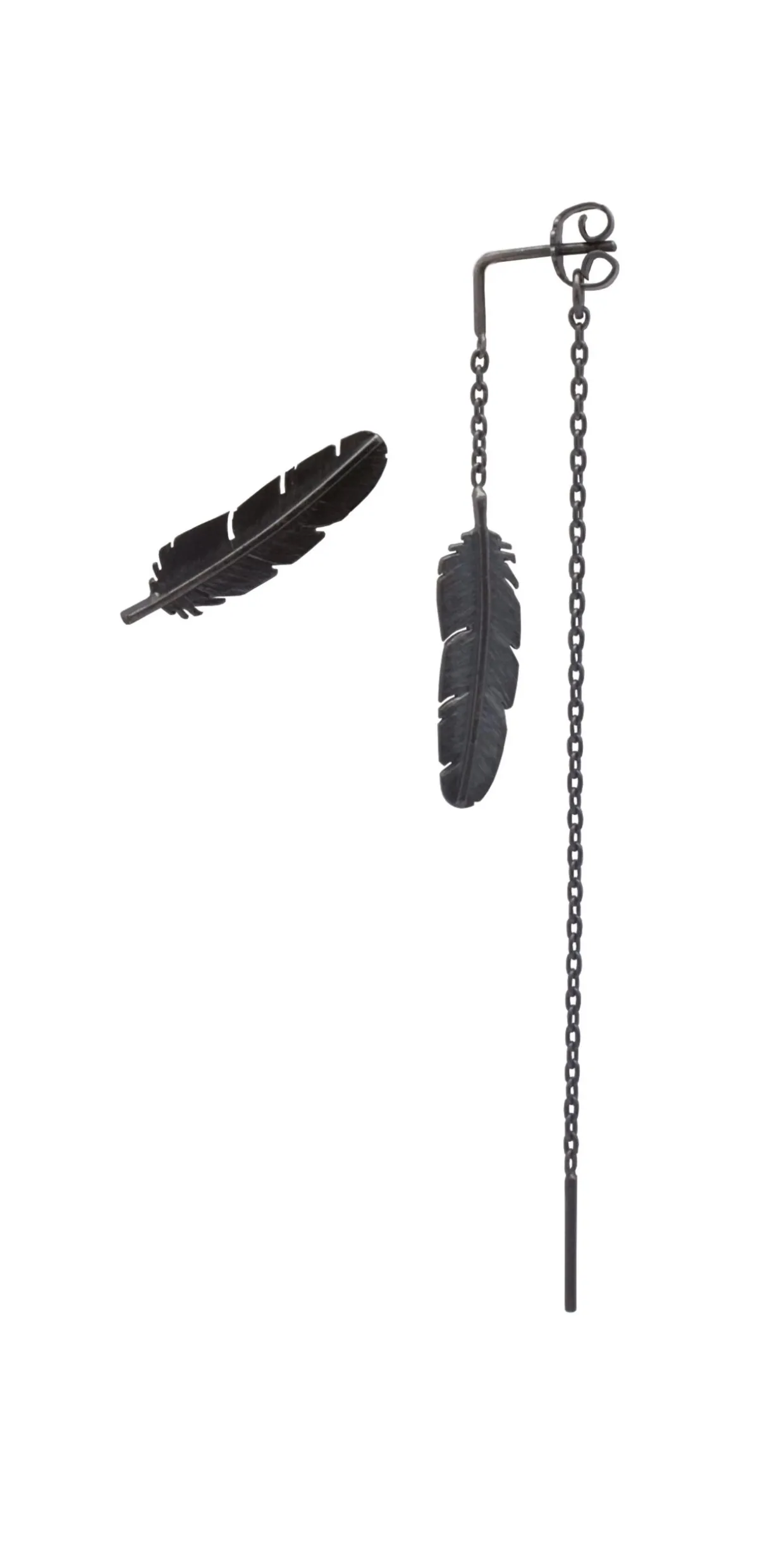 HEIRING ØRESTIK + ½ MED KÆDE FJER SØLV OXYDERET – 51-5-93OX