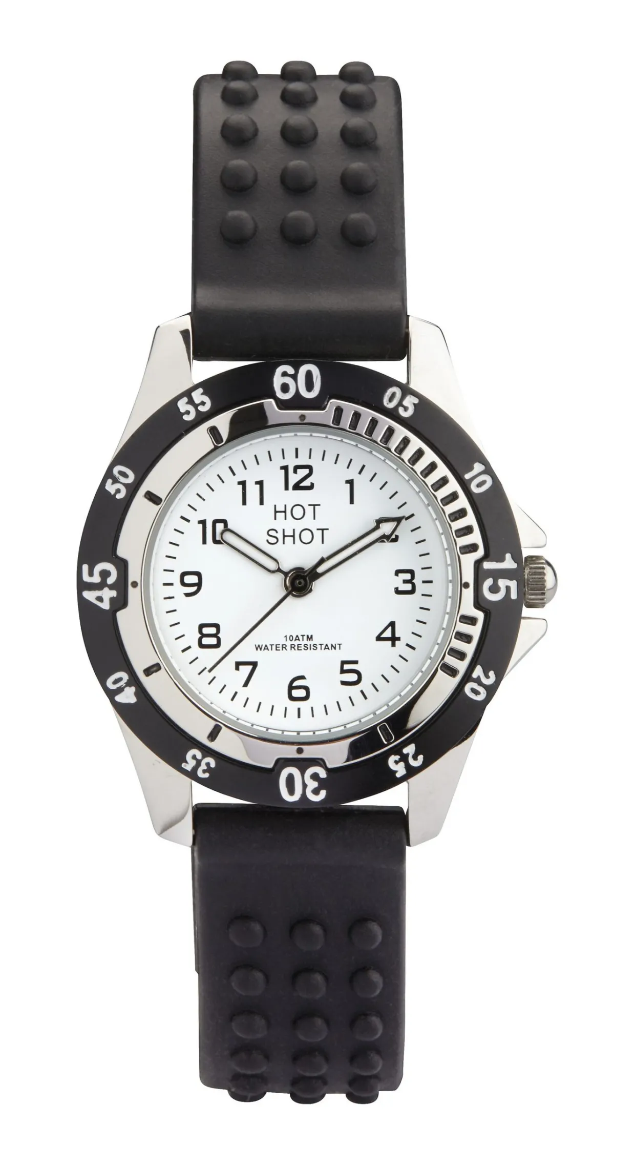 HOT SHOT BØRNE UR STÅL MED SORT GUMMIREM OG 100 METER VANDTÆT – 2684L/2
