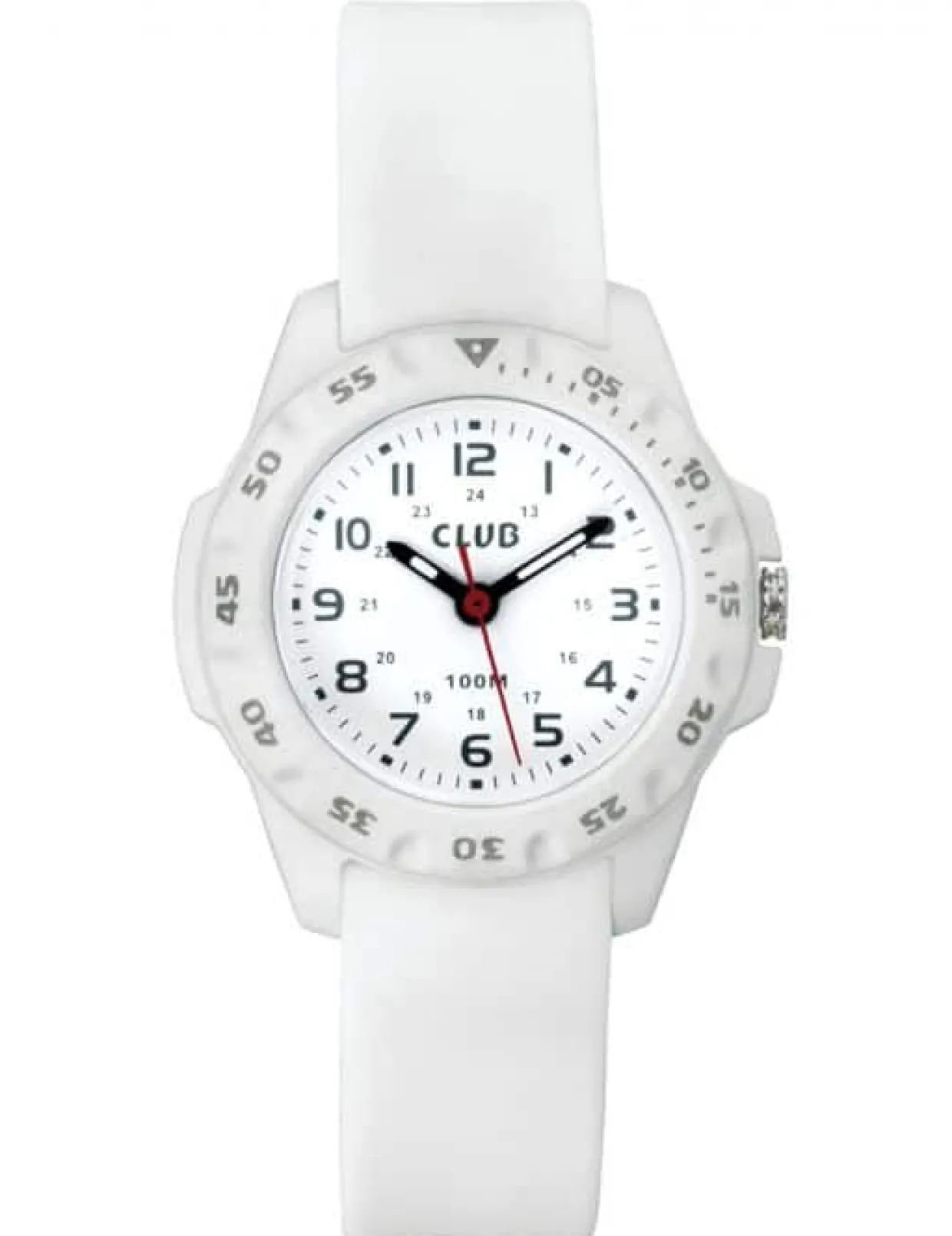 Skive: Hvid urskive med sorte tal som indeks