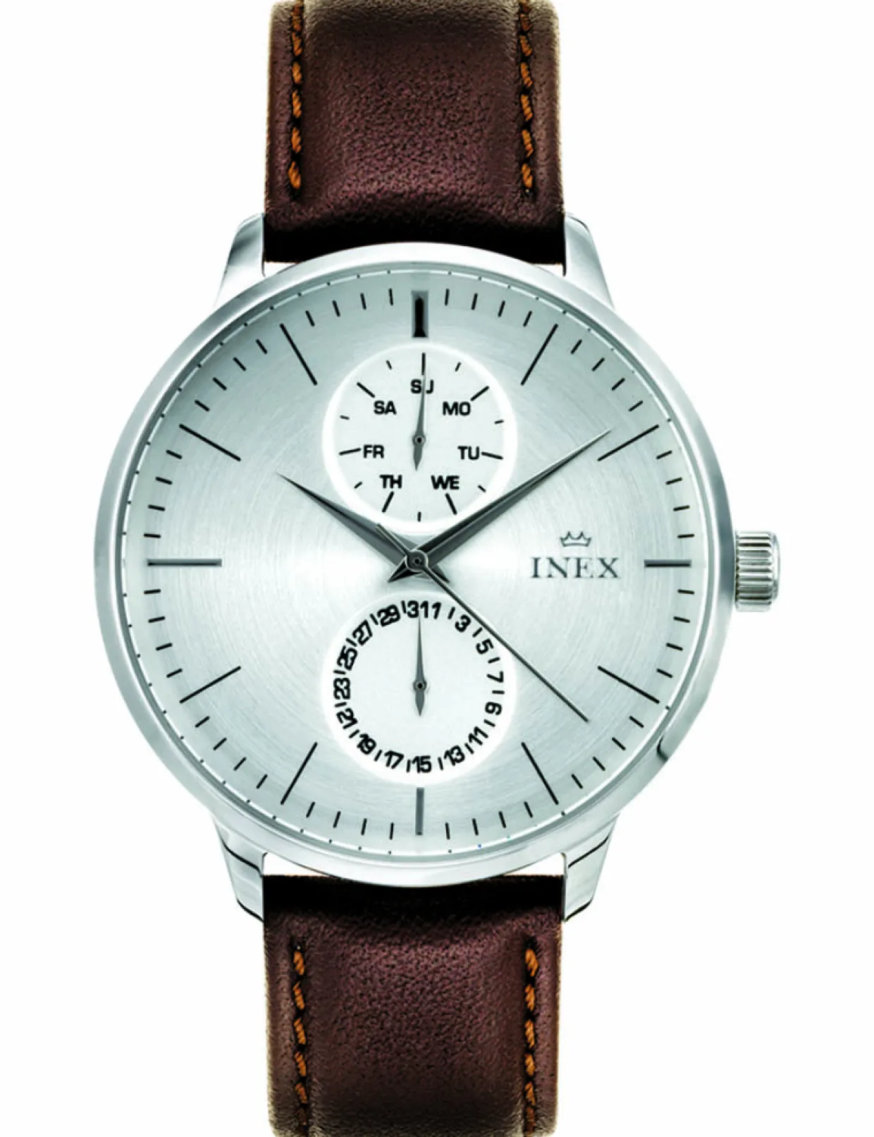 INEX UR HERRE STÅL DAG DATO MED BRUN LÆDERREM – A76198S4I