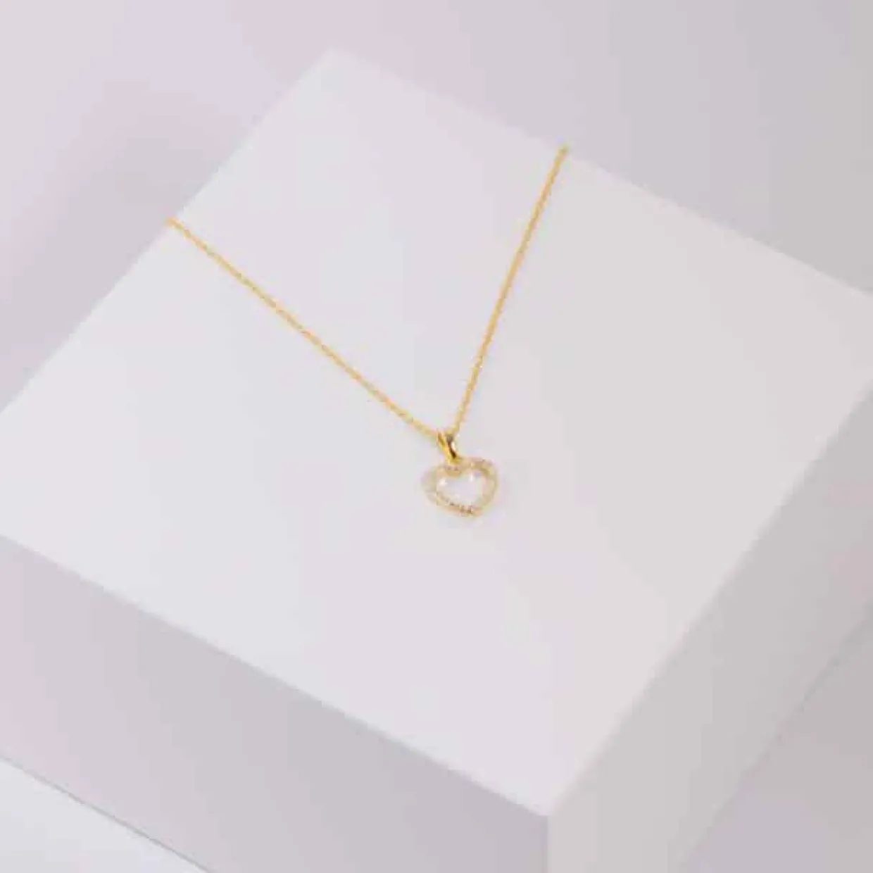Halskæde i 925 sterling sølv forgyldt, med hjerte vedhæng fattet med hvide zirkonia.