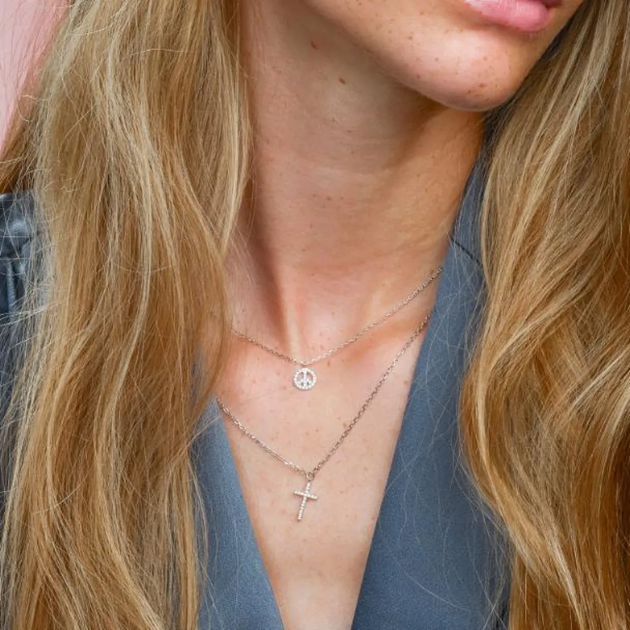 Fin halskæde i 925 sterling sølv, designet med et påsat kors med zirkonia. Korset måler 13,5 mm i højden og 8,5 mm i bredden. Halskæden er 42 cm med yderligere 3 cm til justering.