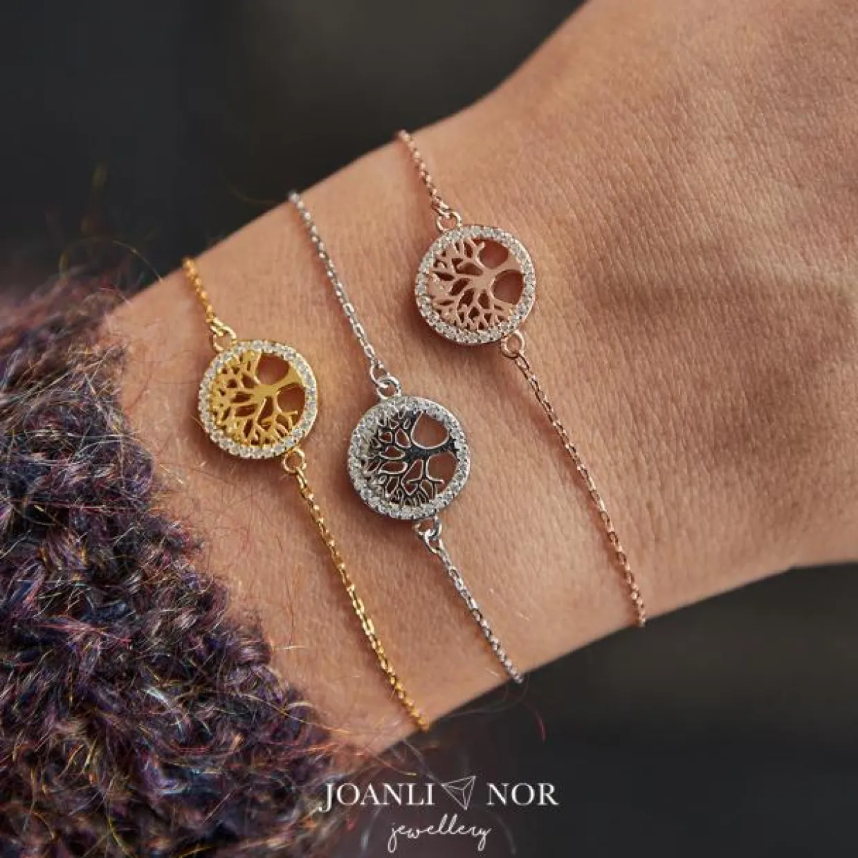 JOANLI NOR ARMBÅND SØLV FORGYLDT 12 MM LIVETS TRÆ MED ZIRKONIA – 80450755900