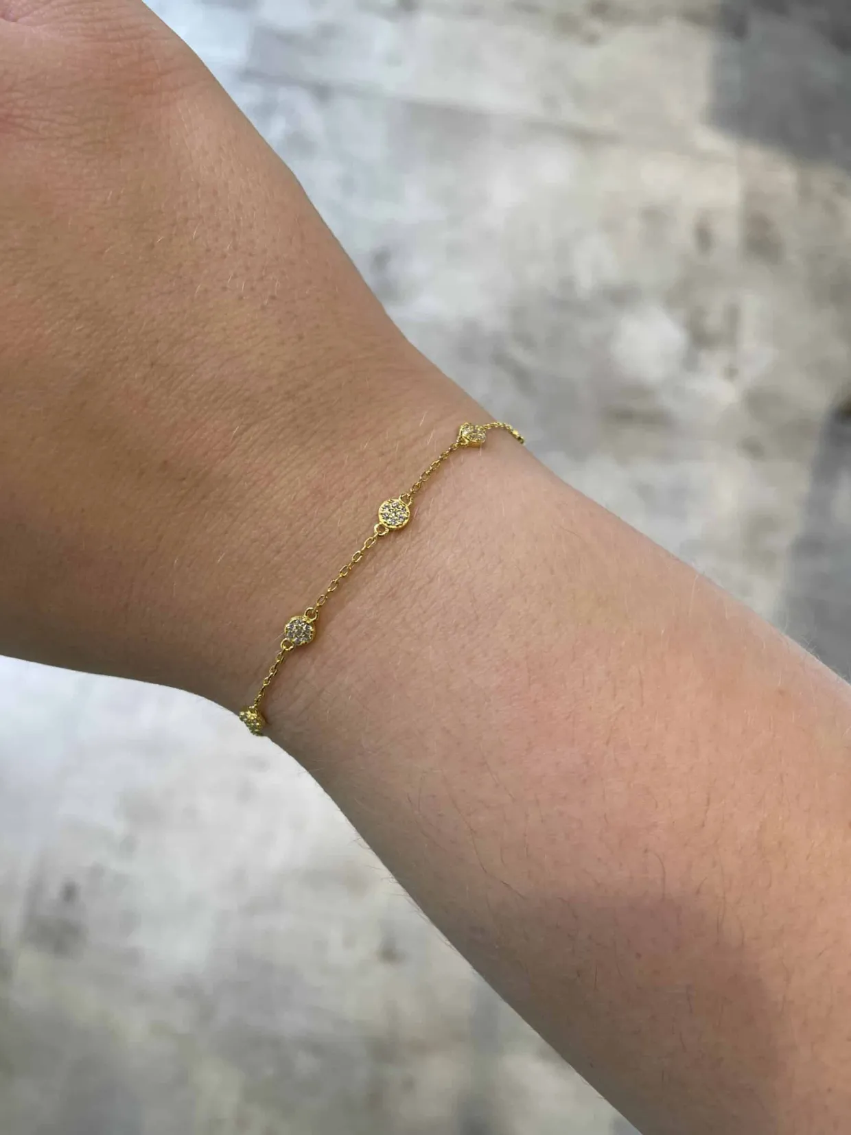 Armbånd i forgyldt 925 sterling sølv, pyntet med fine zirkonia. Armbåndet måler 17cm + 3cm forlænger stykke.