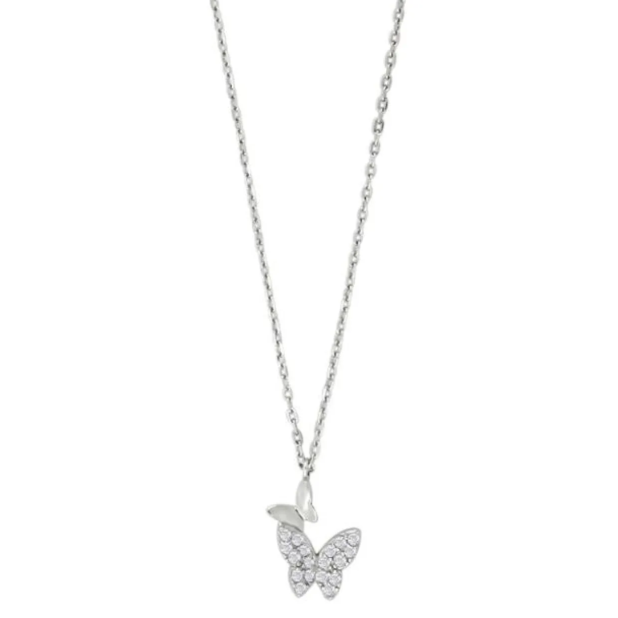 Halskæden er designet med en sommerfugle med hvide zirkonia isat.