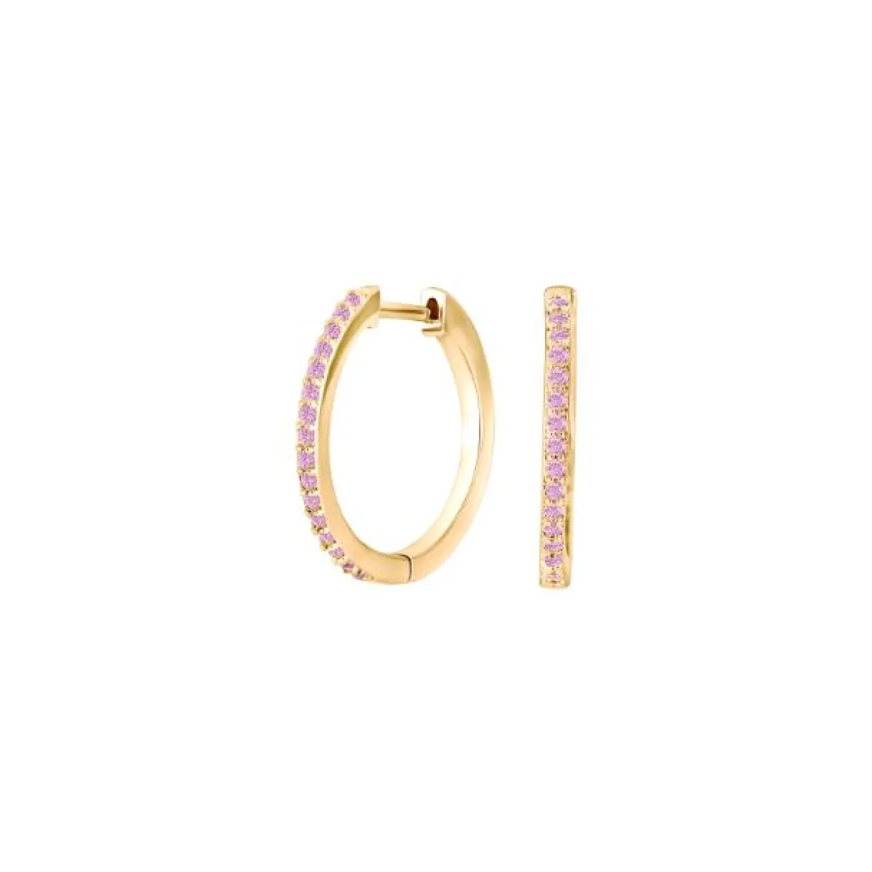 Disse fine creol øreringe er fremstillet i sterling sølv og belagt med 18 karat rød guld. Creolerne er sat med lyserøde zirkoner og øreringen måler 18 mm i diameter.