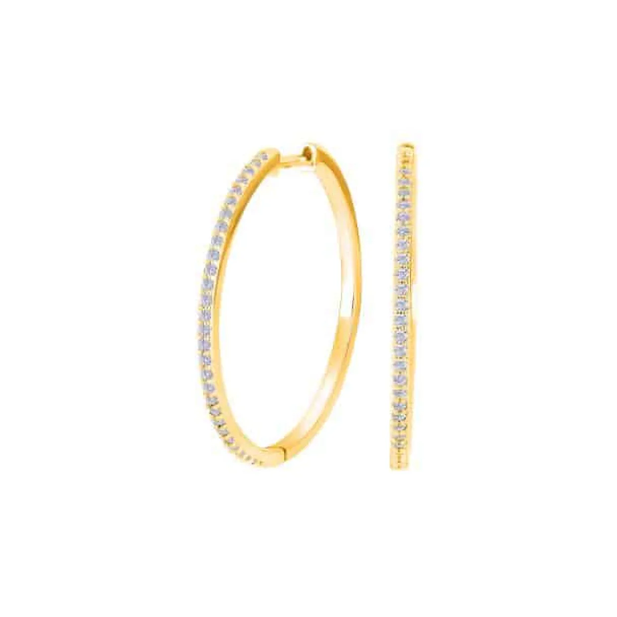 Disse skønne øreringe er fremstillet i sterling sølv og belagt med rød guld. Øreringene er designet som creoler, og er i sat kubiske zirkoner rundt langs creolen. Øreringen måler 28mm i diameter.