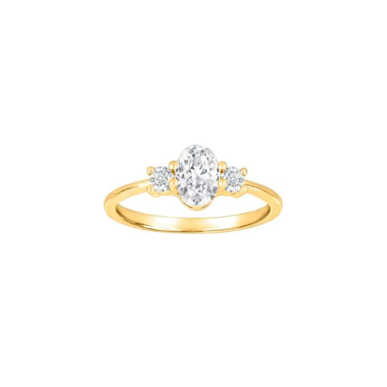 Ringen er lavet i forgyldt 925 sterling sølv med tre syntetiske zirkonia. Med en stor syntetisk zirkonia i midten og to små ved siden af.