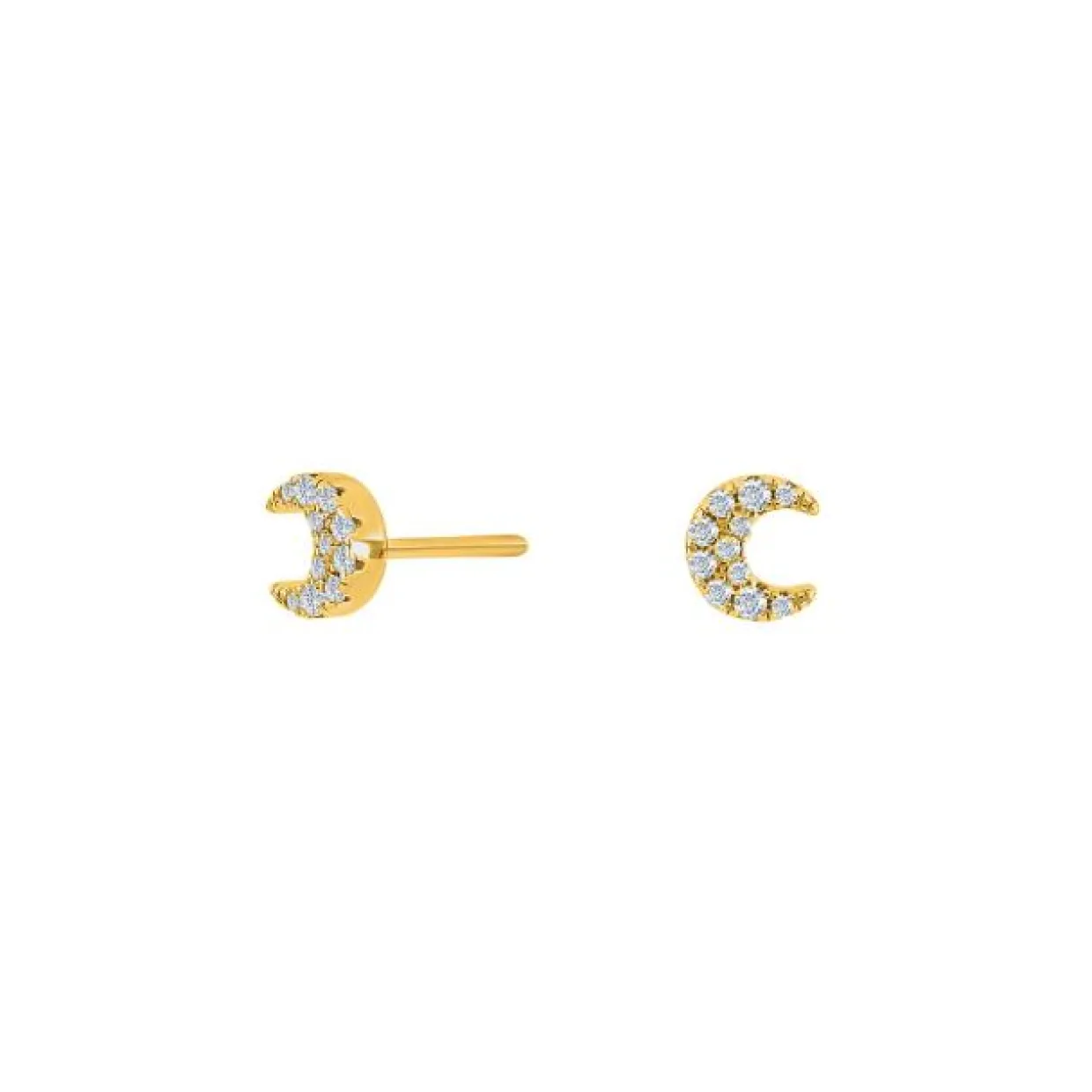 Sølv forgyldte måne øreringe på stik med syntetiske zirkonia. Øreringene er små og pynter til et hvert hul i øret.