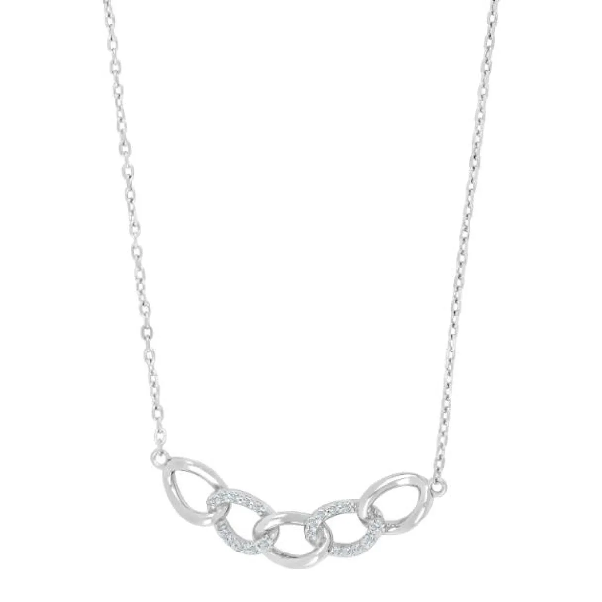 Halskæden er lavet i sterling sølv med små funklende kubiske zirkoniaer.