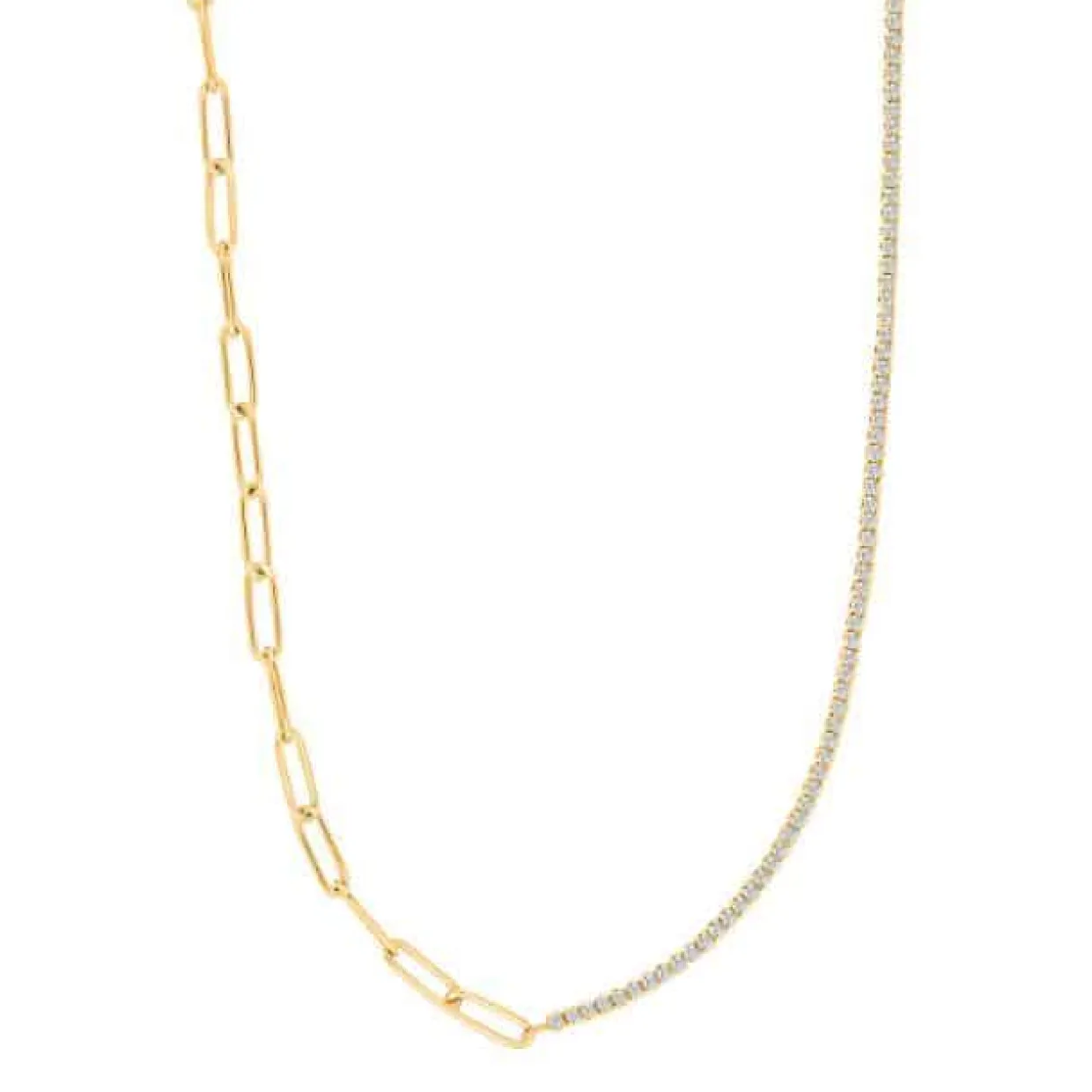 Flot sølv forgyldt halskæde med halv link og hav zirkoner som giver et mega fedt råt look