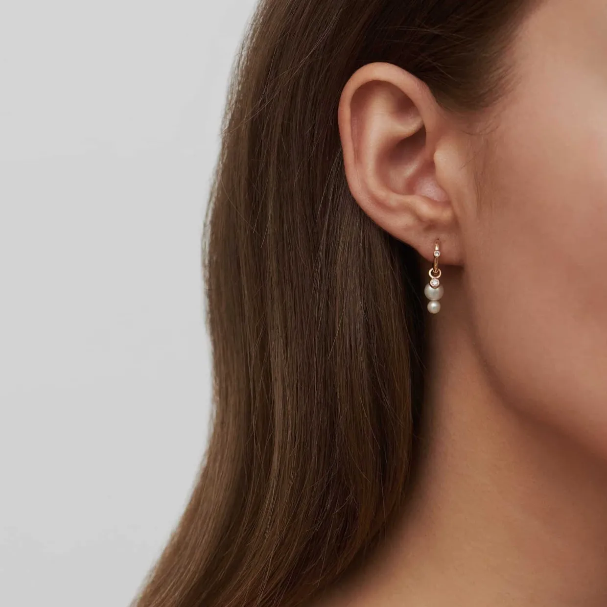 14 karat guld vedhæng med ferskvands kultur perler. Der følger to vedhæng med, men de kan også købes enkeltvis. Vedhænget har en højden på 11,88 mm og en bredden på 6 mm.