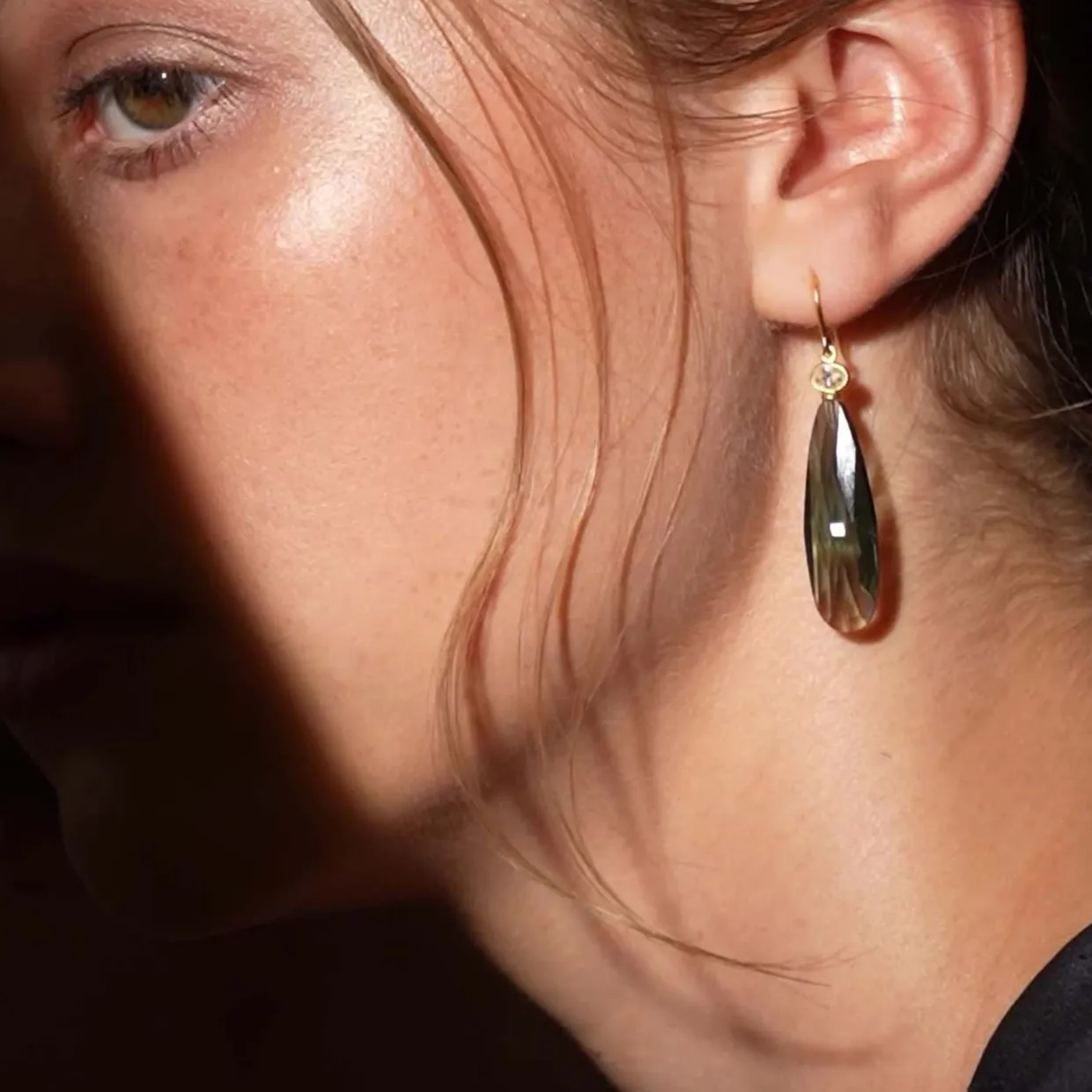 Den dybe midnatsblå krystal skaber en sofistikeret kontrast mod den varme forgyldning, hvilket gør øreringene perfekte til både hverdag og festlige lejligheder. Deres elegante drop-design giver bevægelse og lethed, hvilket fremhæver ansigtets konturer og tilføjer en feminin, glansfuld detalje.