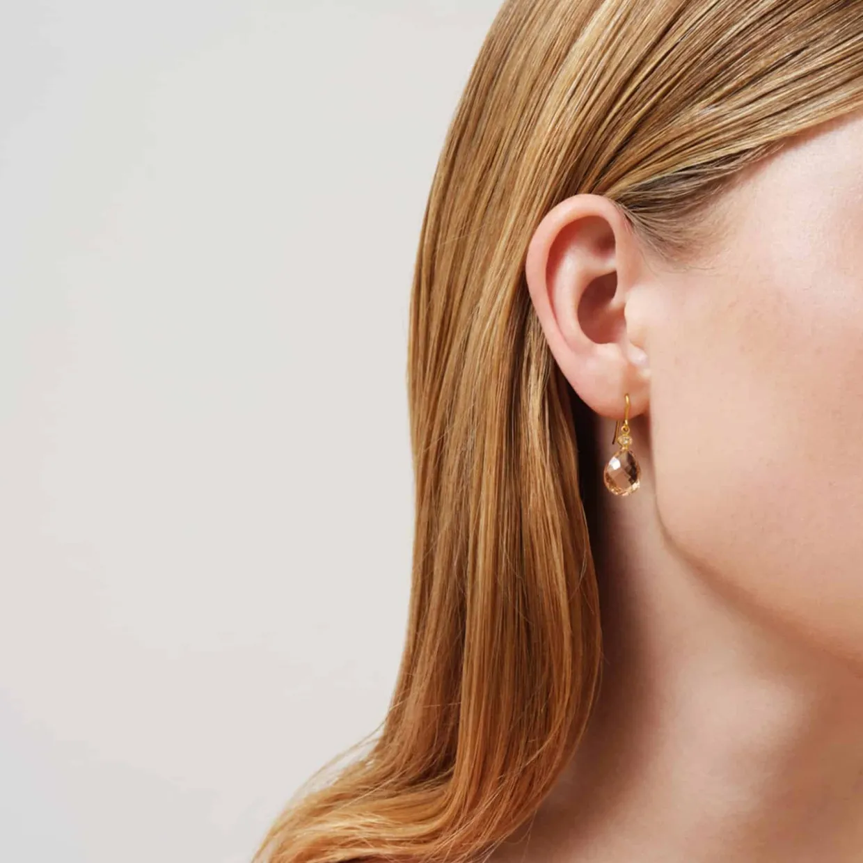 Ofelia øreringene fra Julie Sandlau er et elegant valg til enhver smykkesamling. Disse øreringe, der måler 27 mm x 10 mm, er fremstillet i 22 karat forgyldt 925 sterling sølv med en smuk satineret overflade. Hver ørering er udsmykket med en facetsleben peach morganit-krystal, som fanger lyset og tilføjer en varm, romantisk glød. Øverst i designet sidder en lille oval zirkonia, der giver et ekstra strejf af gnist og elegance. Disse øreringe er perfekte til både hverdagsbrug og særlige lejligheder.
