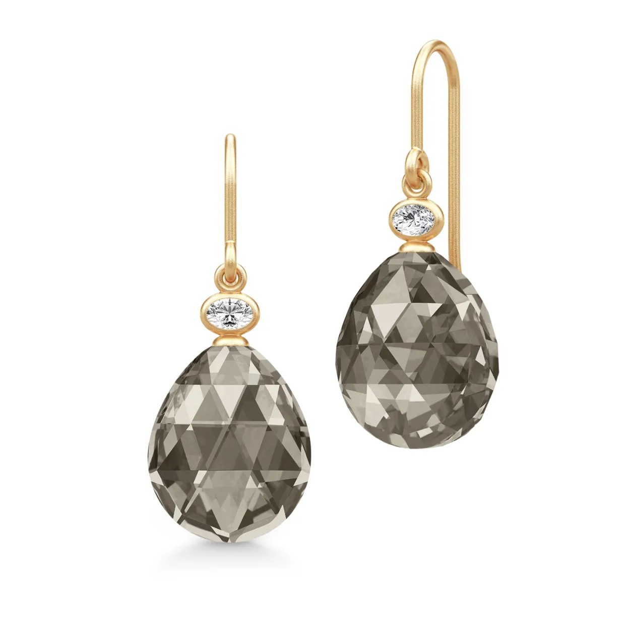 JULIE SANDLAU OFELIA ØRERINGE FORGYLDT SØLV MED SMOKEY KRYSTAL – HKS780GDSMCRCZ