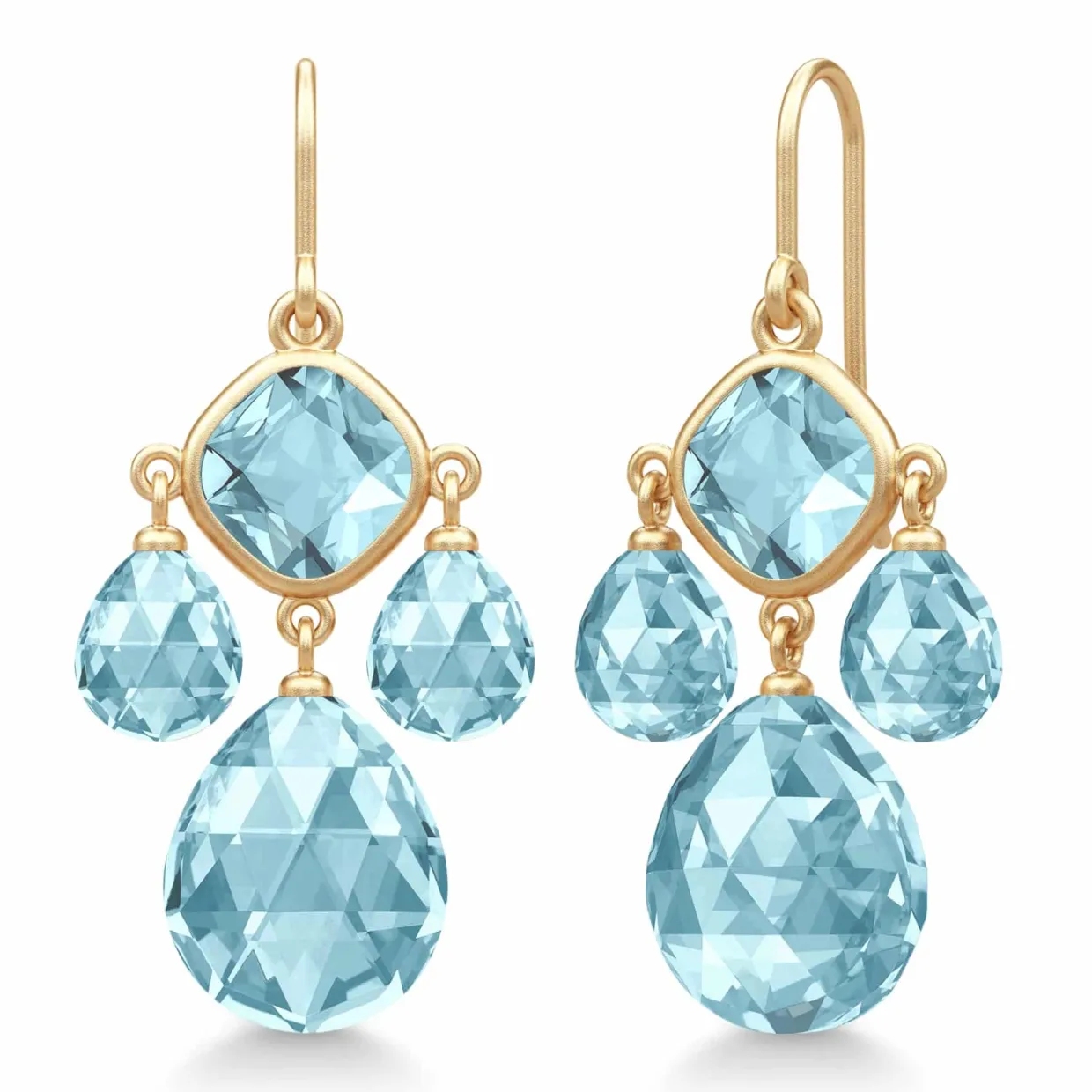 JULIE SANDLAU OLIVIA CHANDELIER ØRERINGE FORGYLDT SØLV MED ISBLÅ KRYSTAL – HKS777GDIBCR