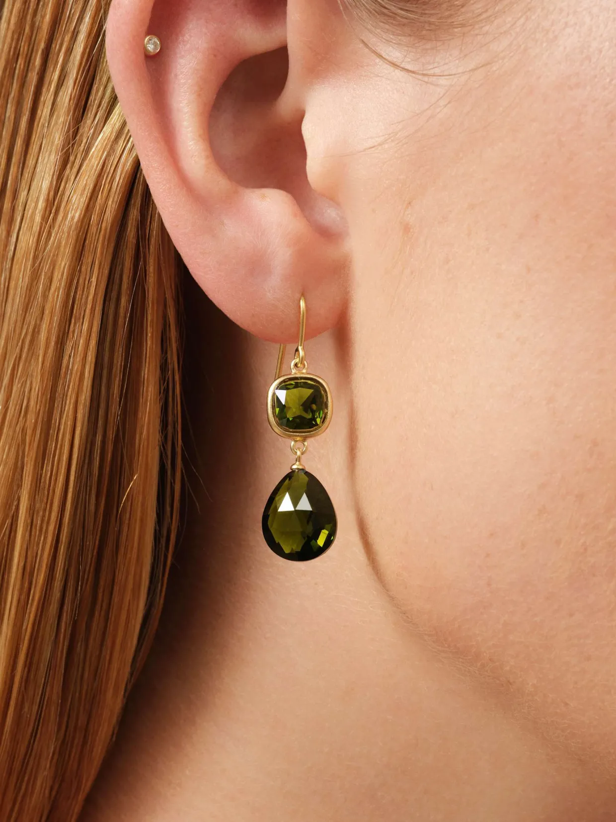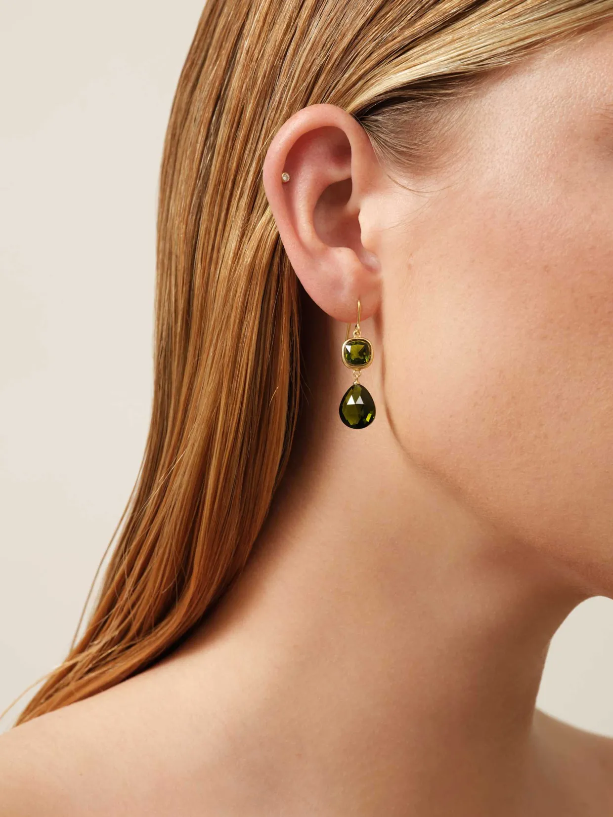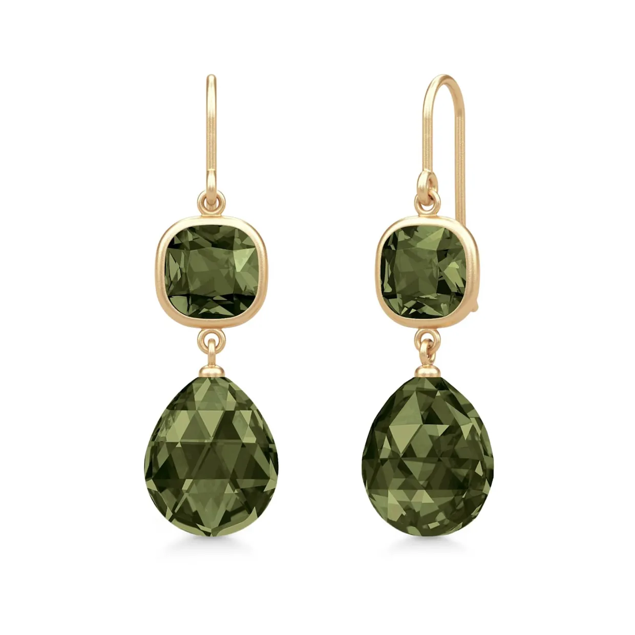 Et strejf af luksus og naturlig skønhed – Olivia øreringene fra Julie Sandlau kombinerer eksklusivt design med en sofistikeret farvetone. Øreringene er fremstillet i sterlingsølv og belagt med 22 karat guld, der giver en varm glød, mens den olivengrønne facetslebne krystal tilføjer et unikt og elegant farvespil.