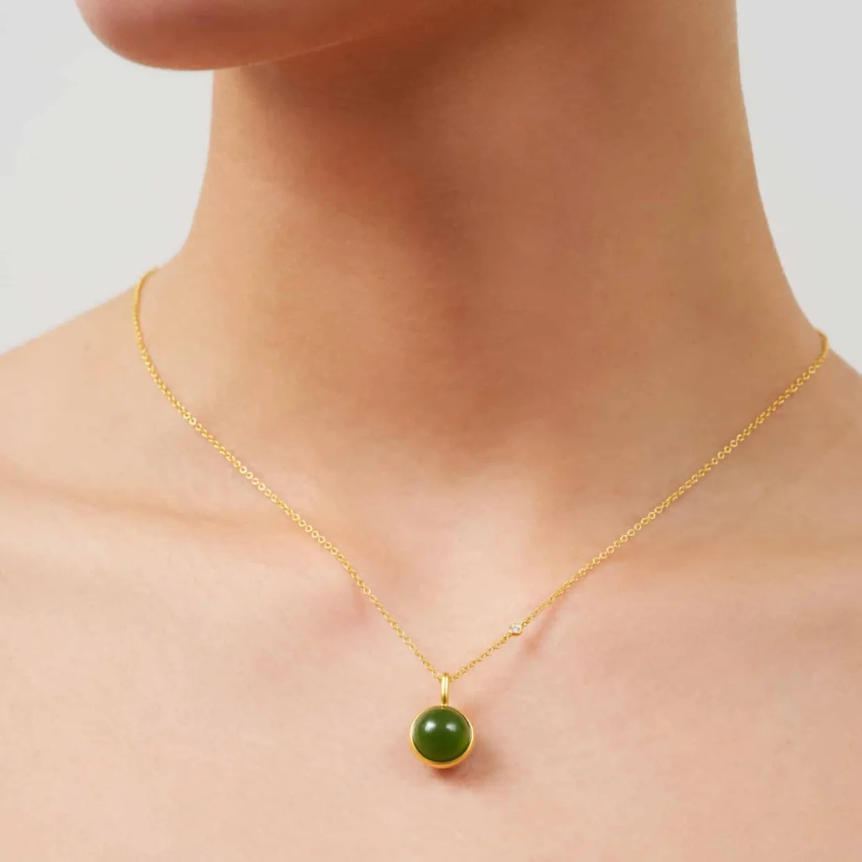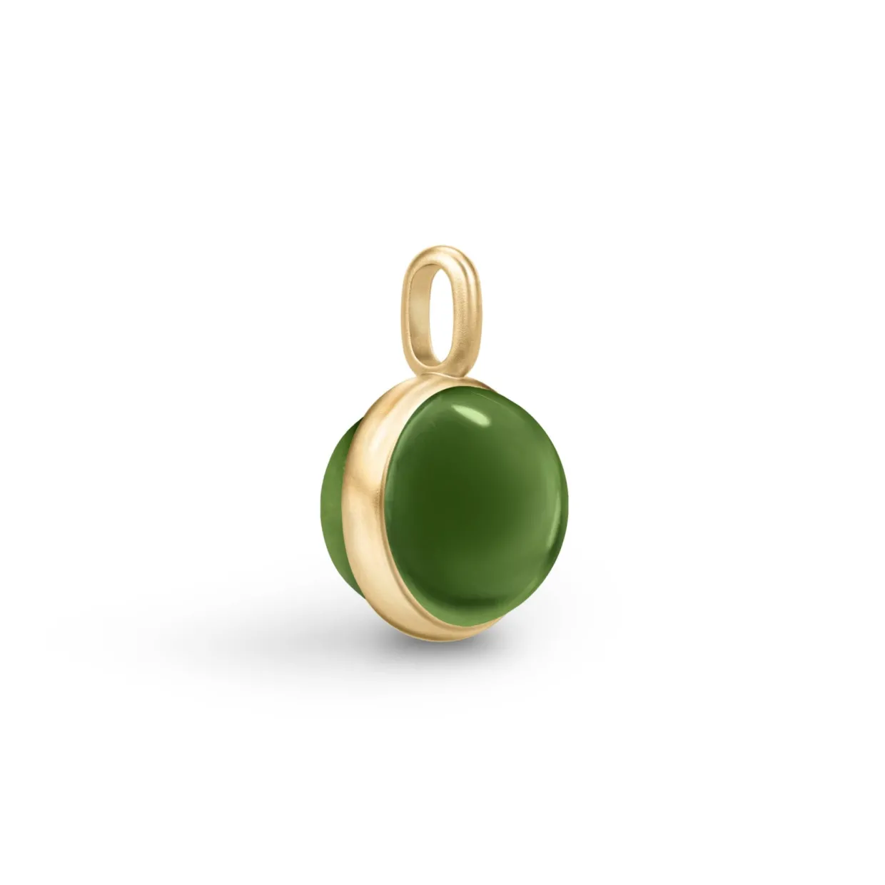 Den dybe, mosgrønne krystal er skåret i den karakteristiske Cabochon-cut, en rund slibning, som er en signatur for Prime-serien. Denne slibning fremhæver krystalens naturlige skønhed og skaber et blikfang med et sofistikeret farvespil. Vedhænget er ideelt til at tilføje et strejf af farve og luksus til din smykkesamling.
