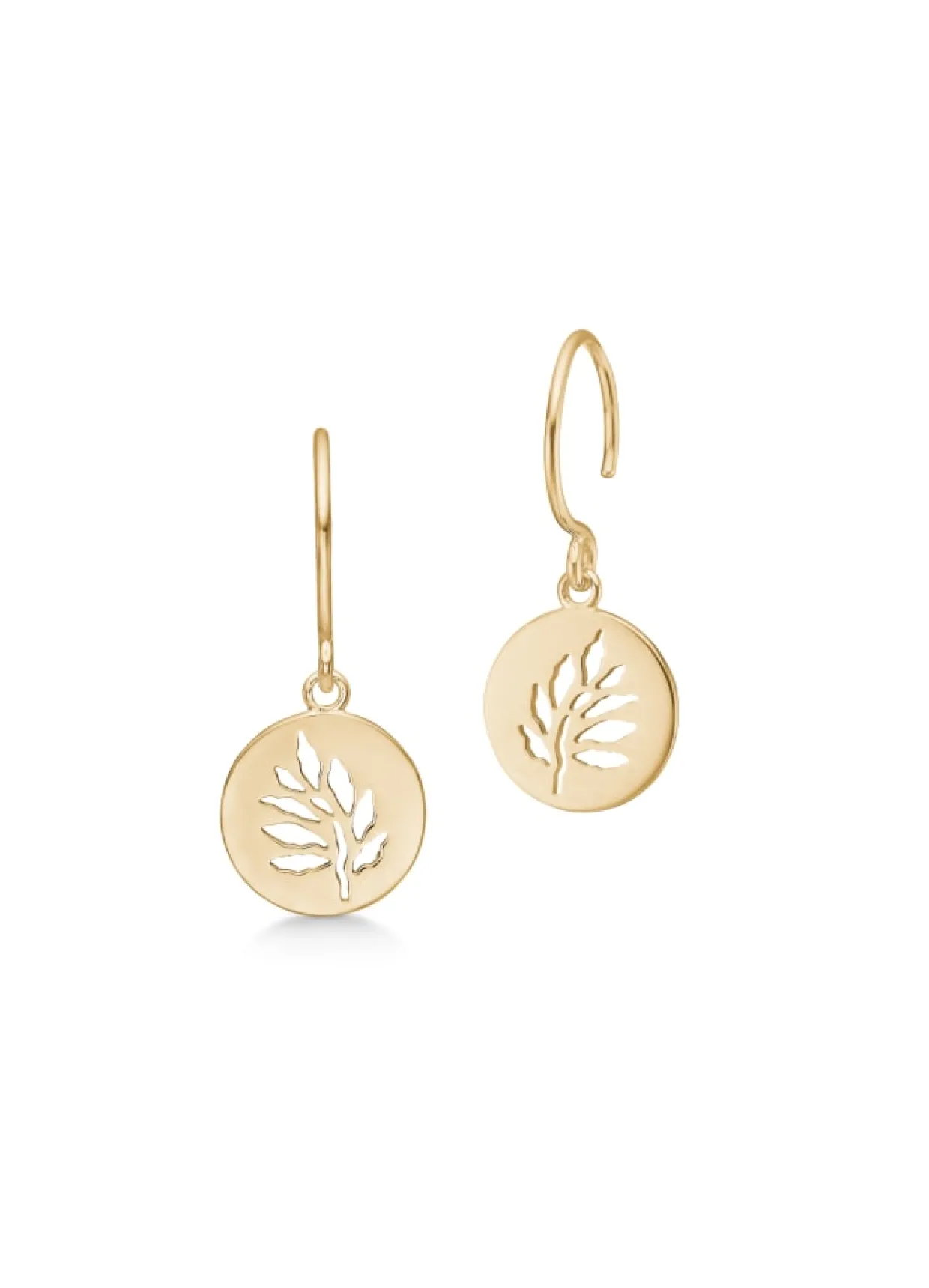 14 karat guld øreringe som hænger med Julie Sandlau signatur logo. Øreringene er en del af vores signatur-kollektion, Tree of Life, og er prydet med Julie Sandlaus ikoniske logo; livets træ. Sælges som par. Længde: 24,7mm Bredde: 11mm.