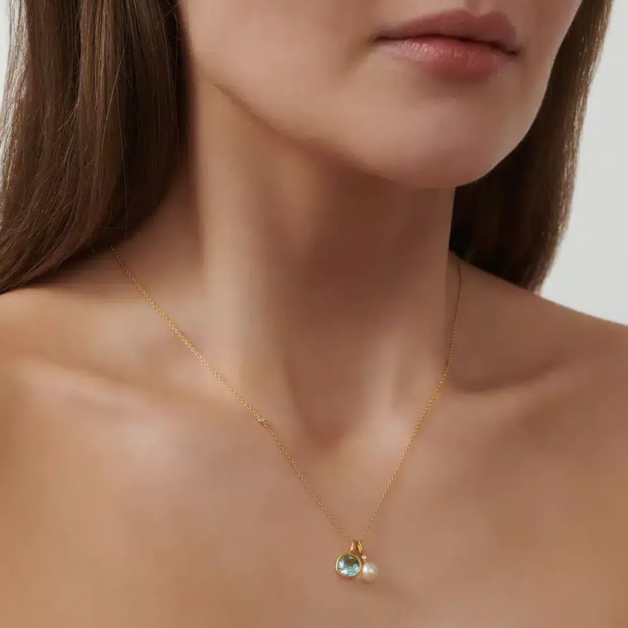 Det fortryllende Olivia-vedhæng fra Julie Sandlau inkorporerer en smukt pudeskåret krystal, omfavnet af det ikoniske gyldne bånd, der kendetegner mærket. Vedhænget, der bærer navnet Olivia, er omhyggeligt fremstillet af genanvendt 22-karat forgyldt sterlingsølv og måler 14 x 8 mm. Lad det harmonere med matchende øreringe.