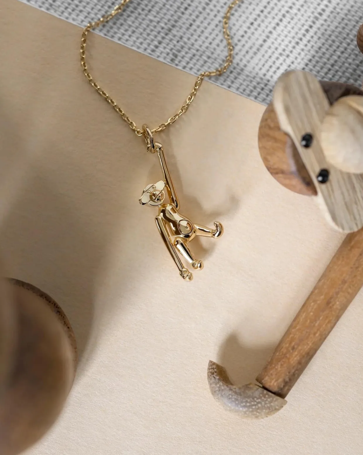 Kay Bojesen Jewelry abe halskæde i forgyldt sølv er et smykke, der skiller sig ud. Vedhænget er en elegant miniature af Kay Bojesens elskede træ abe fra 1951, som gennem årtier har været et symbol på glæde, fantasi og dansk design i verdensklasse.