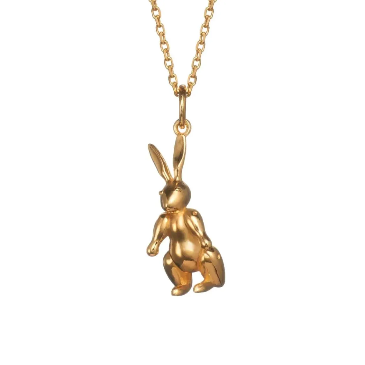 Tilføj varme, charme og klassisk dansk design til din smykkesamling med denne smukke kanin halskæde i forgyldt sølv fra Kay Bojesen Jewelry. Halskæden er en elegant fortolkning af Kay Bojesens originale trækanin fra 1957 – en figur, der symboliserer nysgerrighed, glæde og personlighed.