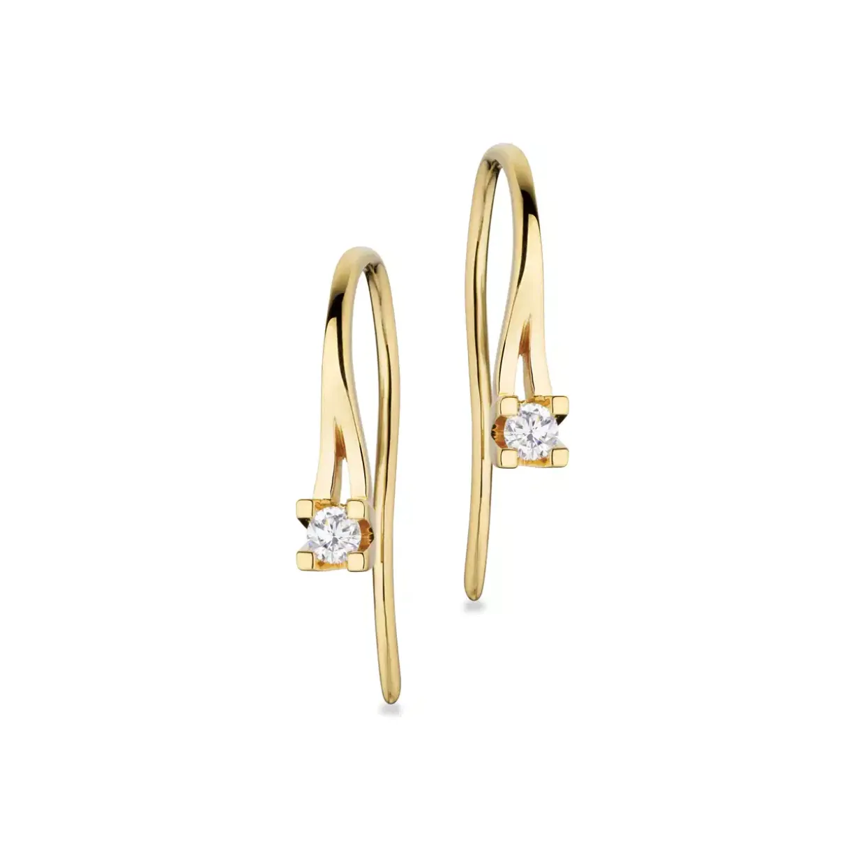 14 karat guld øreringe som hænger på bøjle. Ørehængerne er med brillant på en samlet carat på 0,10 i kvaliteten wesselton/si. Øreringene er tilknyttet en ombytningsret, at inden for to år kan man ombytte dem til minimum nummeret støtte, ved at betale differencen.