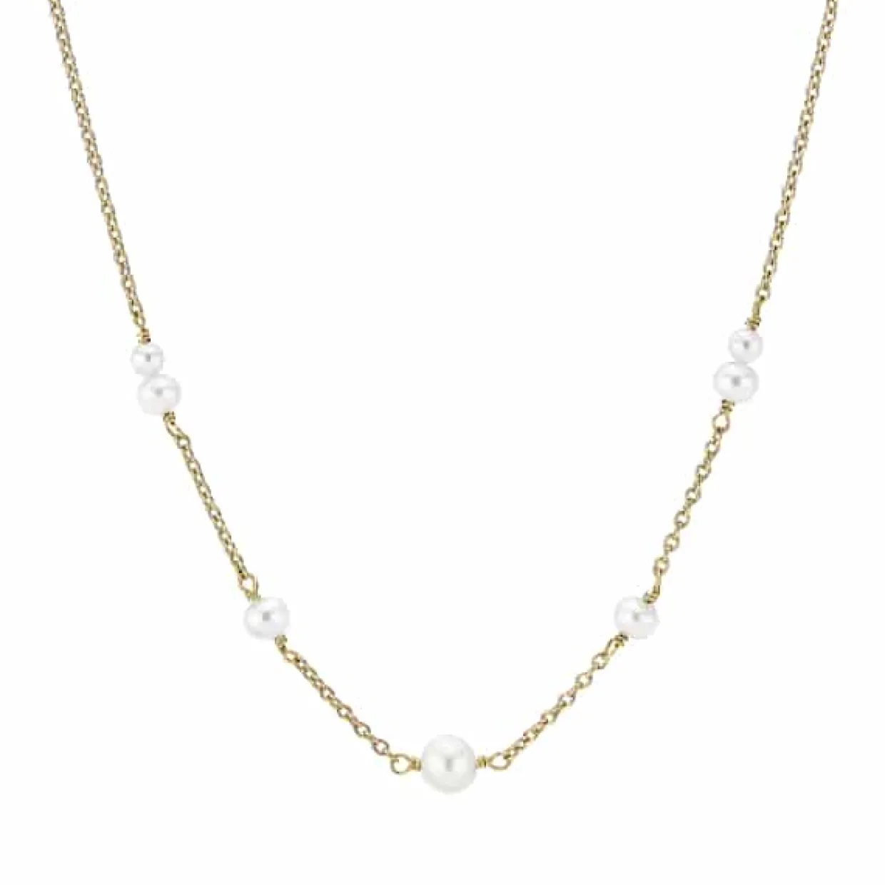 Smuk 8 karats guld halskæde hvor der sidder ferskvandsperler på tråden.