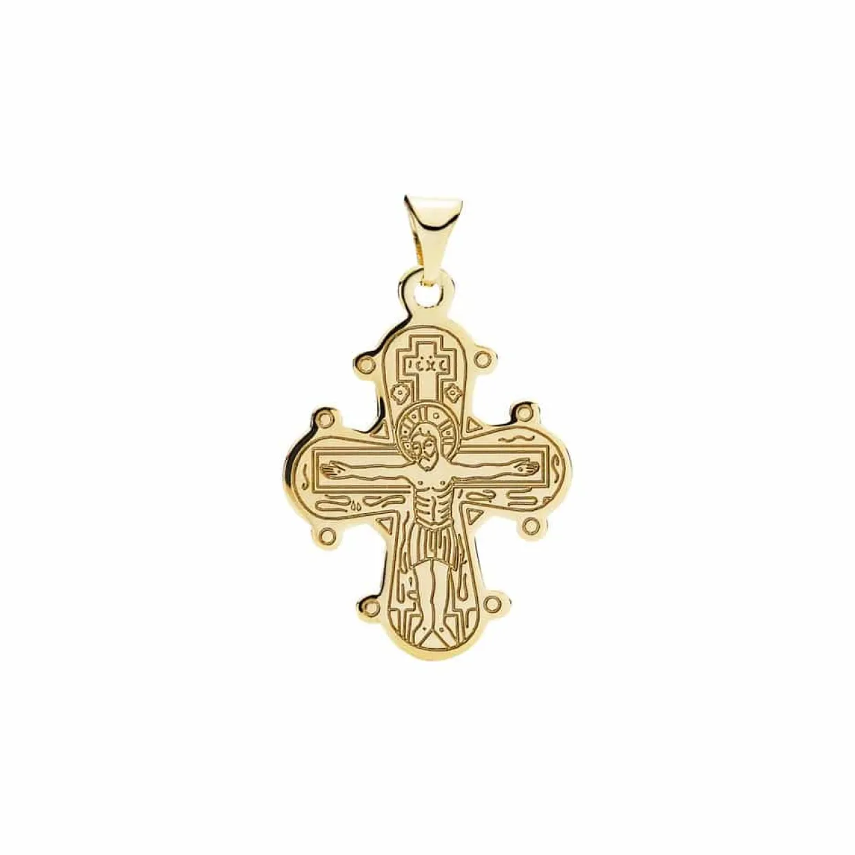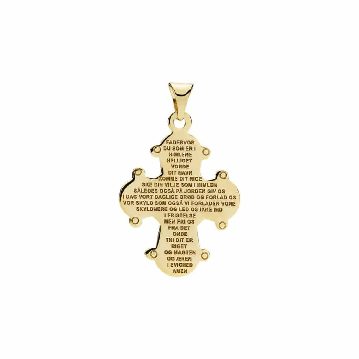 Sølv forgyldt vedhæng med dagmarkors. Dagmarkorset måler 20 mm i højden og 17 mm i bredden. På dagmarkorsets bagside står hele fadervor.