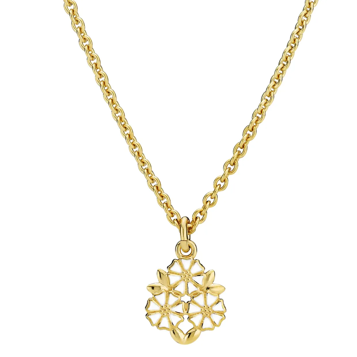 LUND COPENHAGEN HALSKÆDE 3 MARGUERITTER MED BLADE SØLV FORGYLDT – 9025078-M