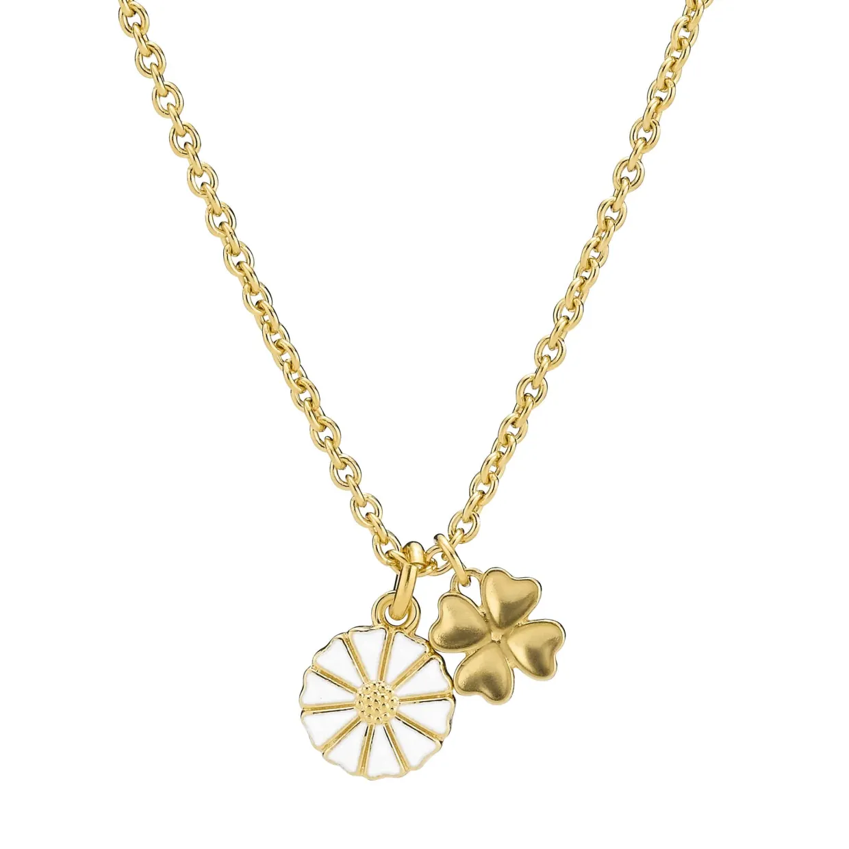 LUND COPENHAGEN HALSKÆDE FORGYLDT SØLV MARGUERIT OG FIRKLØVER – 9025073-M