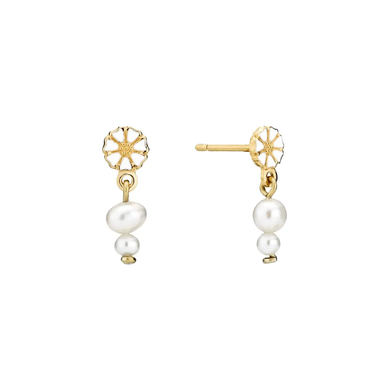 LUND COPENHAGEN ØRERINGE SØLV FORGYLDT MARGUERIT MED PERLE – 9095074-4-33-M