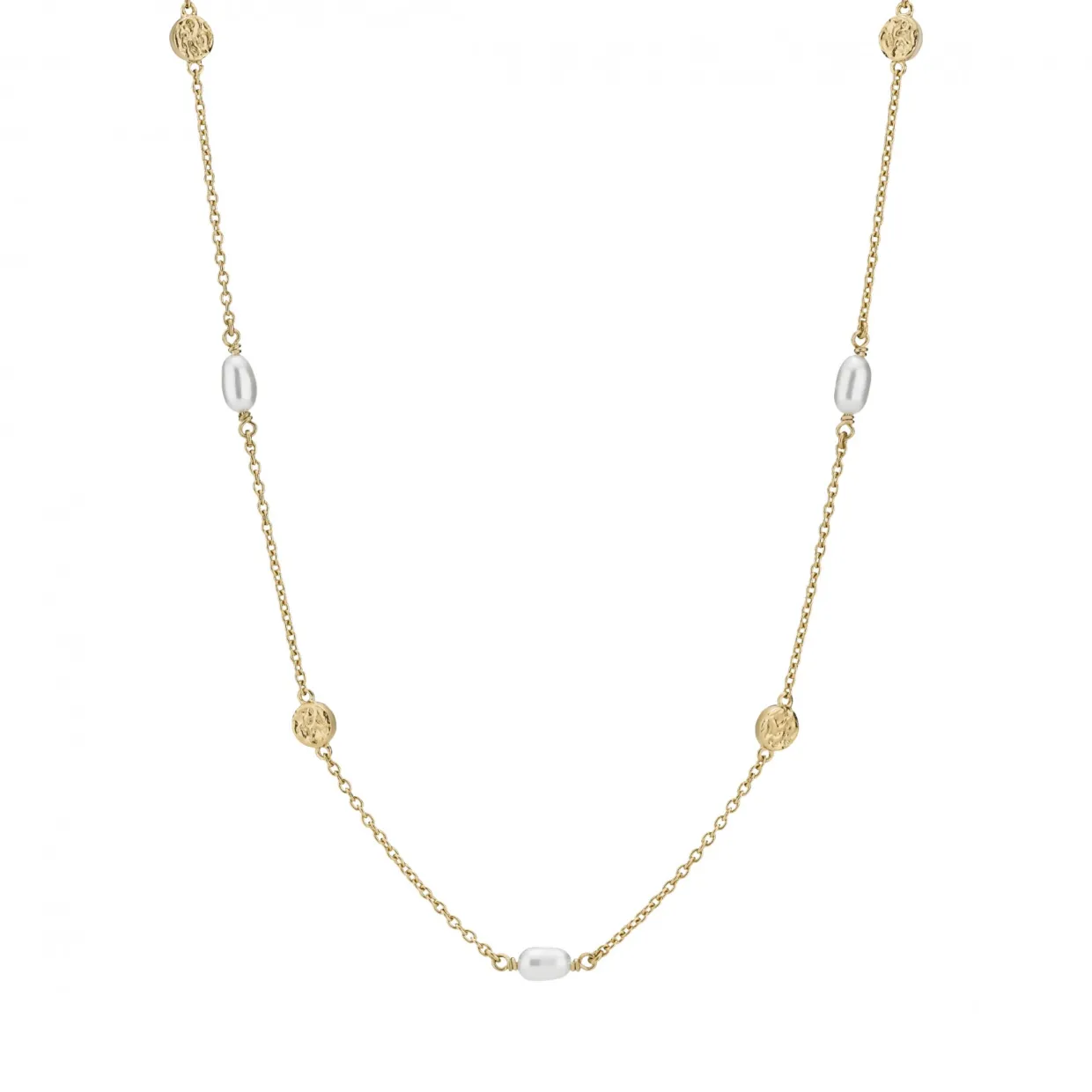 LUND COPENHAGEN SØLV FORGYLDT HALSKÆDE MED RUSTIK PLADE OG PERLER – 9021238-33-F