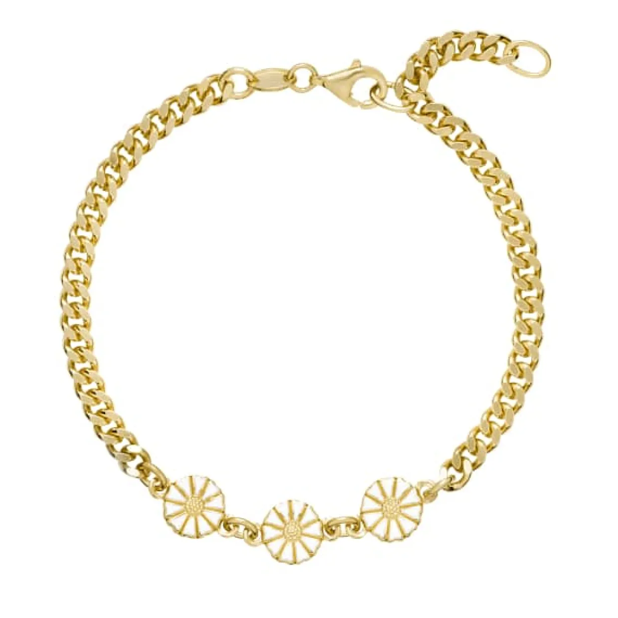 Der sidder 3 små margueritter i midten som måler 3×7,5 mm.