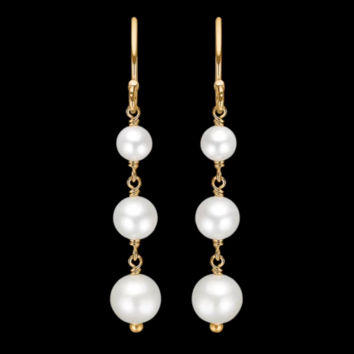 14 karat øreringe med 3 flotte hvide kulturperler i forløb.