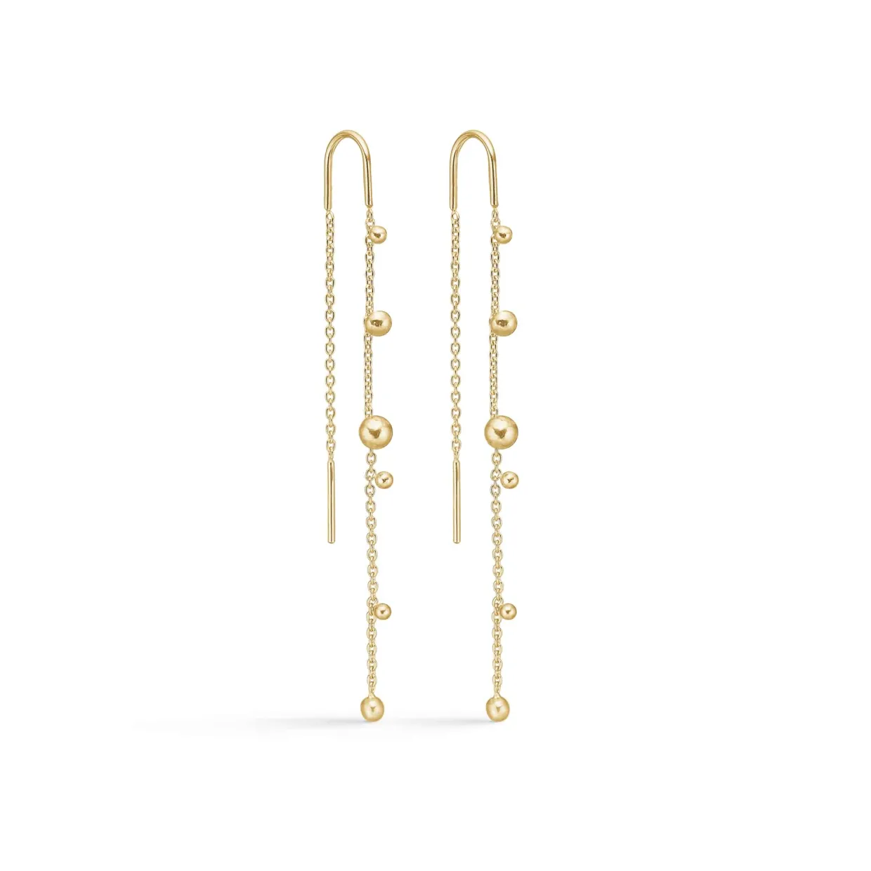 14 karat guld ørehænger med kugler. Ørehængerne har en bøjle så de sidder perfekt i øret. Ørehængerne er med blank overflade og uden sten.