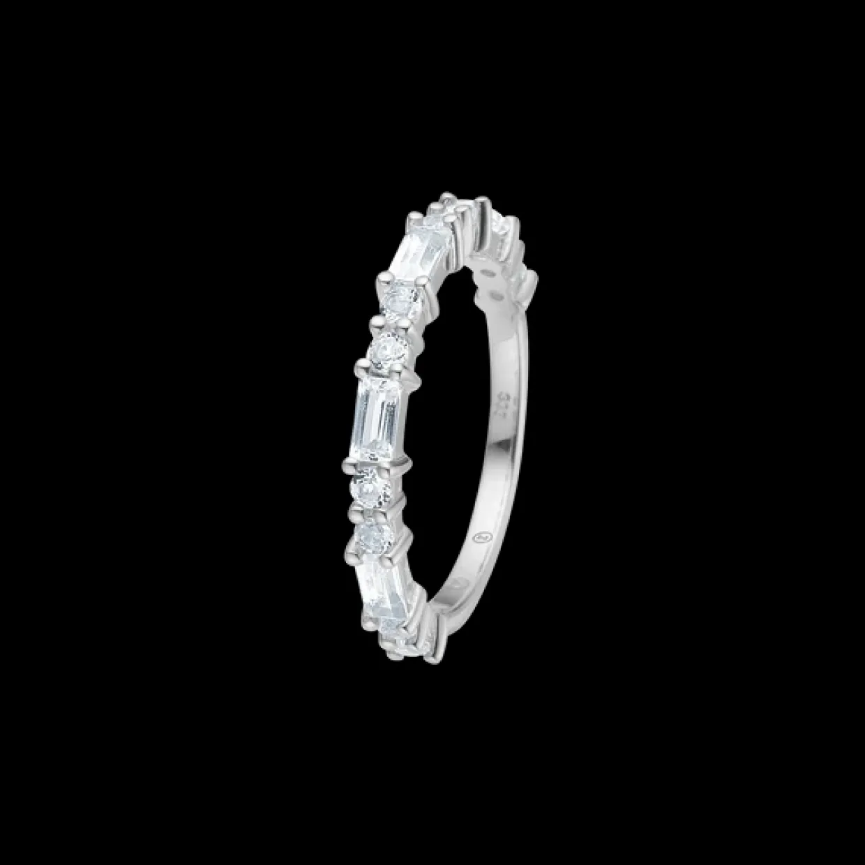 Ringen er fremstillet i 925 sterling sølv og hvide topaser.